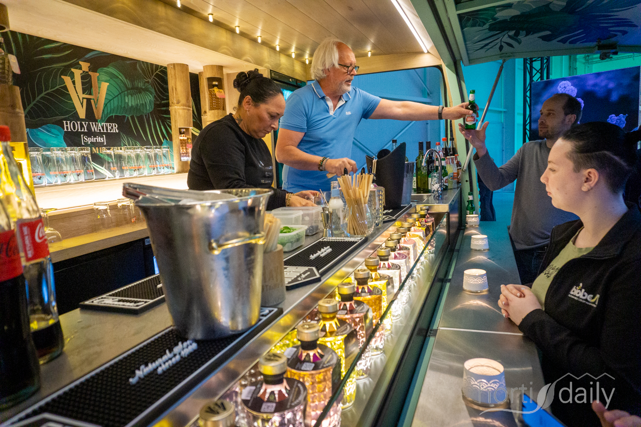 Tijd voor een drankje. Anna Beneens, architectenbureau Beneens, met Ramon van der Kruis, Tom Peeters, Harry Struyf, SLS group, en Michele van Naelten, en Jef Beneens, ook van architectenbureau Beneens