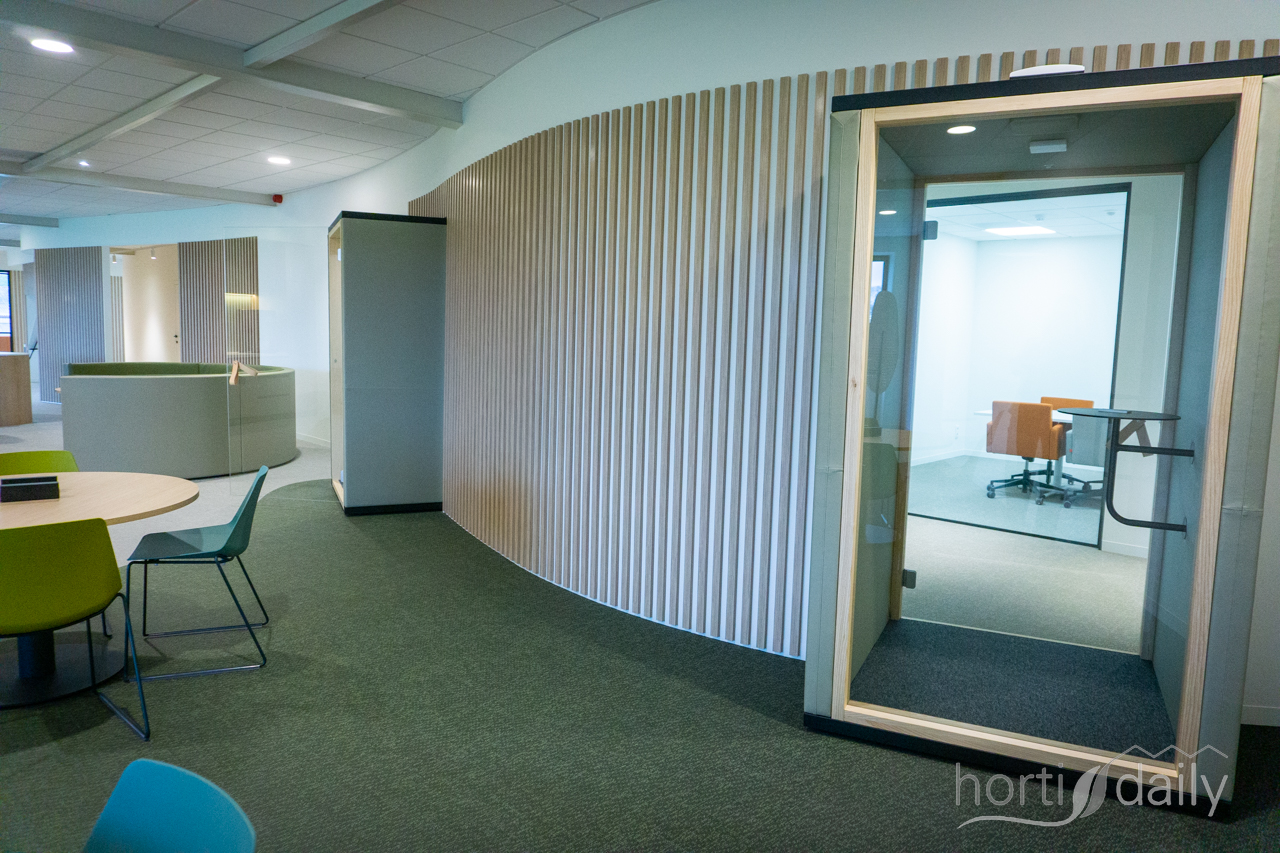 De kantine biedt ruimte aan de 50 collega's die hier gaan werken