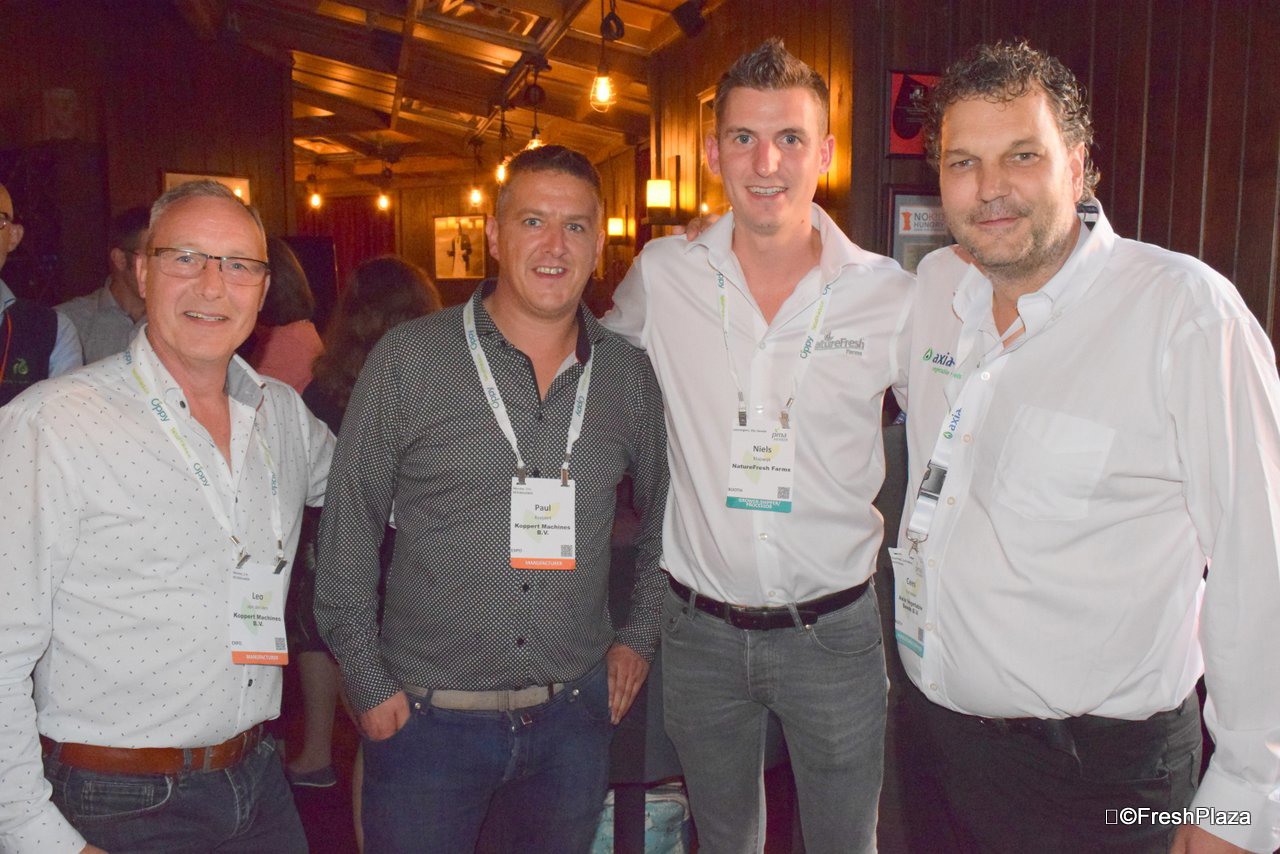 Barry Mulder van Cool Control, Leo van der Ven van Koppert Machines, Sander Bruins Slot van FreshPlaza, Niels Klapwijk van NatureFresh Farms en Paul Koppert van Koppert Machines