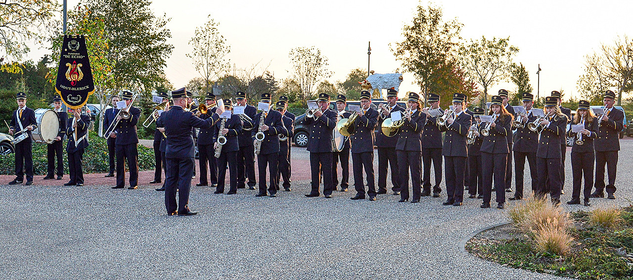 Onthaal bij terugkomst door het Fanfarekorps van Hout-Blerick. Jan is beschemheer van deze mooie muziekvereniging.