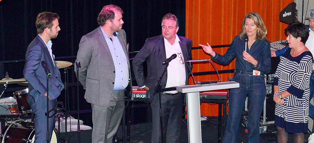 Jules, Jan jr. Jan en Marita nogmaals op het podium bij Simone, maar nu voor hun eigen feest!