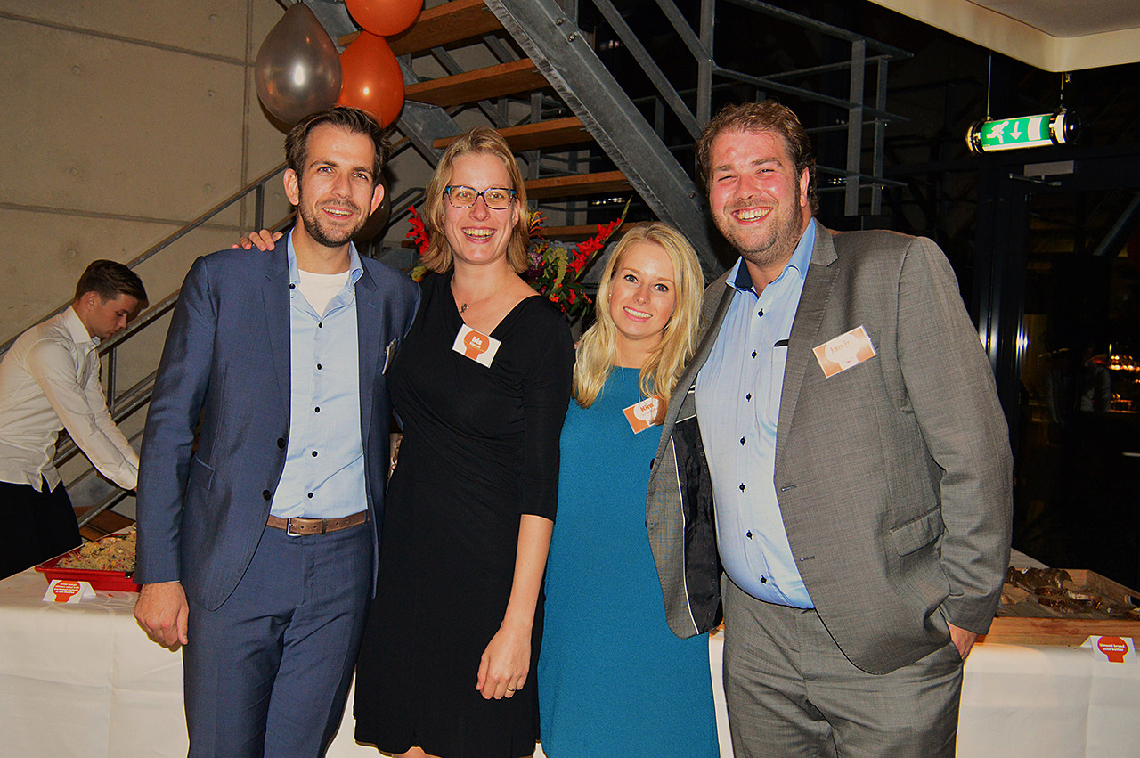 vlnr:Jules links met naast hem Iris de partner van Jan jr. en rechts Jan jr. met aan zijn zijde Kim de partner van Jules
