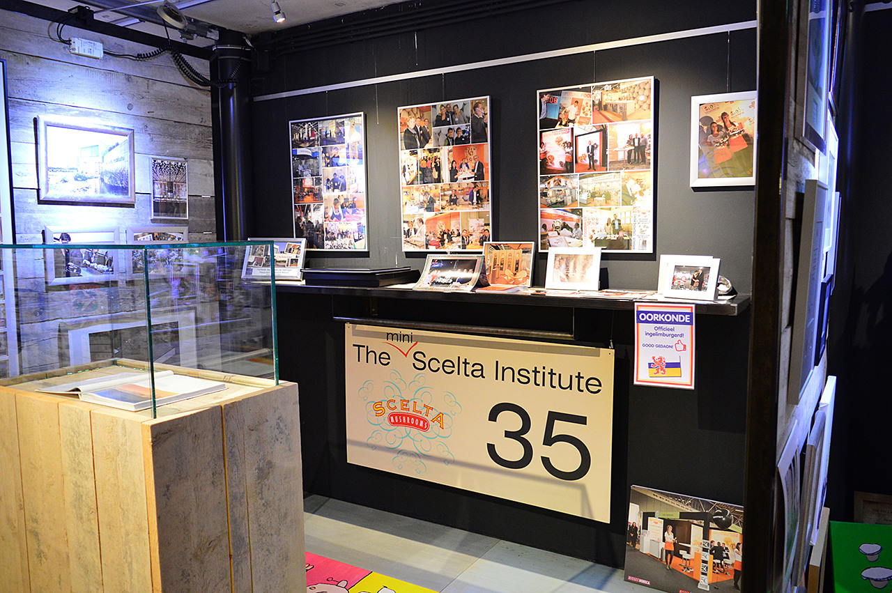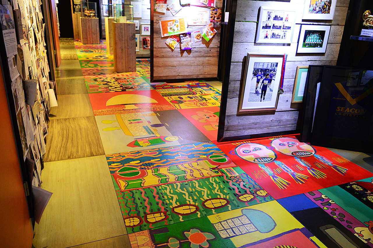 De vloer van het minimuseum is een kunstproject van Atelier Oet de Verf, een kunstatelier voor mensen met een beperking. Een van de vele goede doelen die Scelta sponsort.