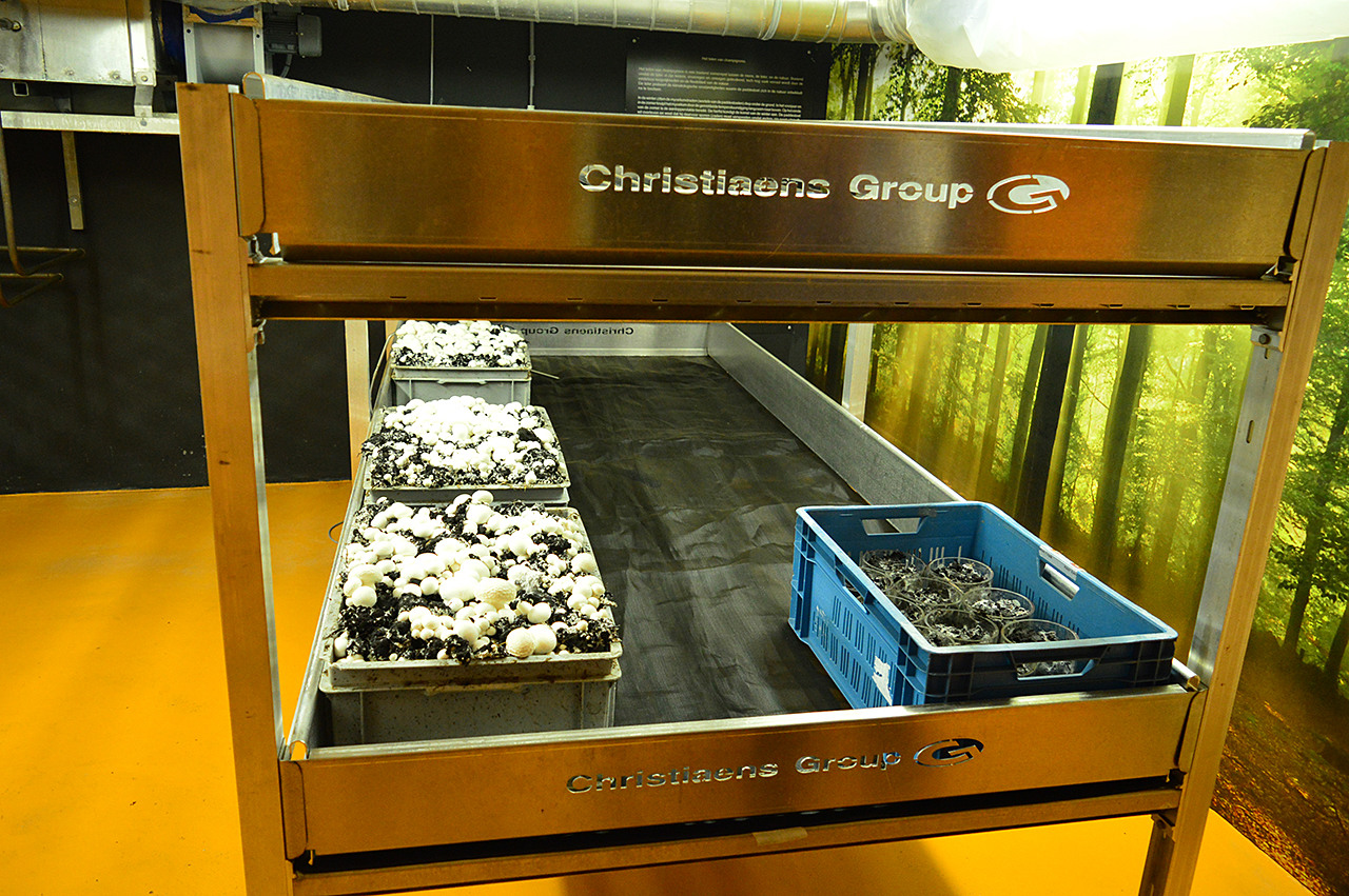 Een minikwekerij, want ja zelfs in het Scelta instituut waar alle ideeën tot uiting komen wil je iets van product kunnen laten zien.De champignons worden boven gebruikt in de eigen Scelta keuken.