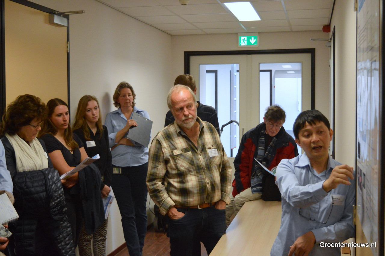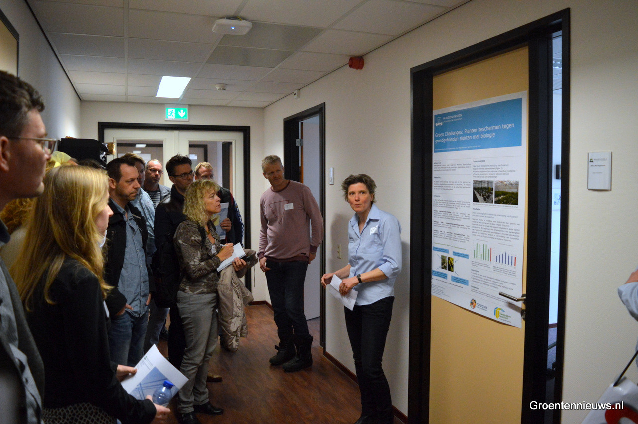 Na het plenaire gedeelte werden er posterpresentaties gehouden waarbij diverse onderzoek uitgelicht werden. Hier legt Suzanne Breeuwsma e.e.a. uit over Green Challenges, waarbij onderzoekers planten met biologie beschermen tegen grondgebonden ziekten.