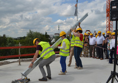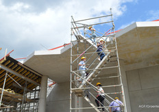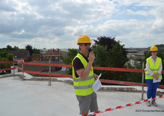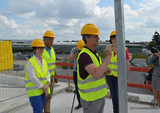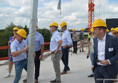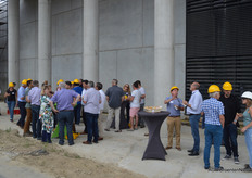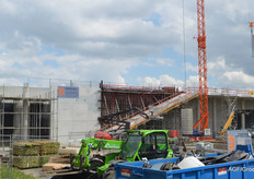 Ook was er tijd voor een rondleiding, onder meer langs de gevel waar tegen de gekartelde betonconstructie een eveneens gekartelde glazen wand komt te staan, symbool voor het vooraanzicht van een kas. Bovendien wordt dit de plek om naar boven te gaan.