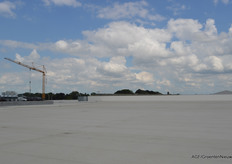 Er zijn vijf silo's gebouwd en daar bovenop ligt er ook nog een waterreservoir onder de kistenloods. In totaal kan er straks 2200 kuub water worden opgeslagen. Bovenop de silo's komt het twaalf meter hoge deel van de kas.