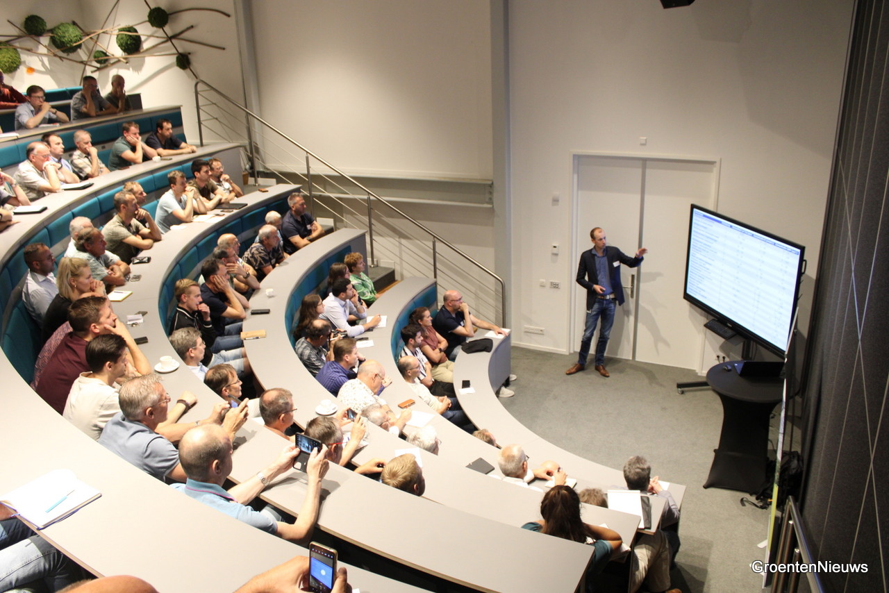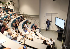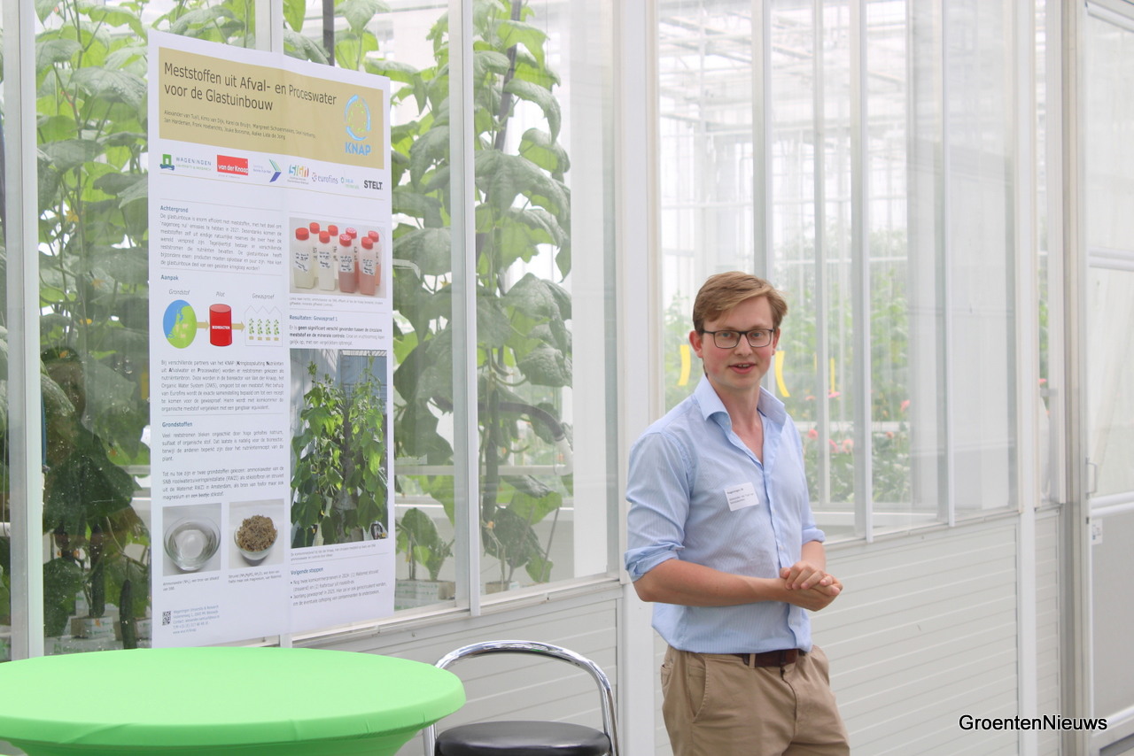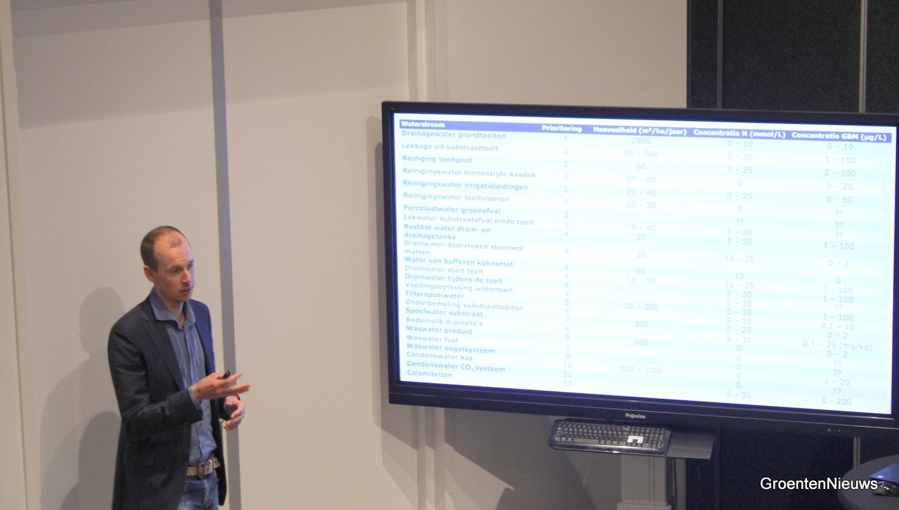 Alexander Tuyll van Serooskerken van de WUR besprak een project waarbij gekeken wordt of het mogelijk is meststoffen uit afval- en proceswater te halen voor hergebruik in onder meer de glastuinbouw.