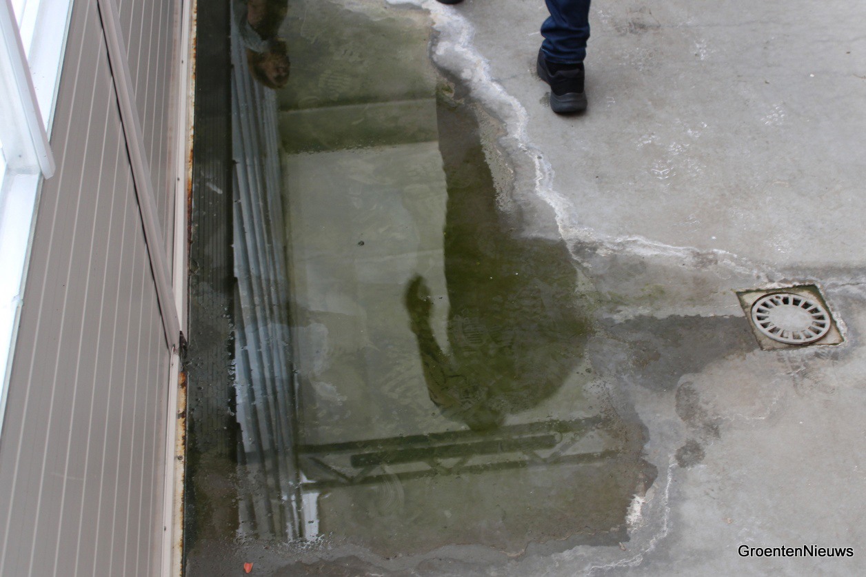 Hé, nog een plasje water op de grond. Ook bij dergelijke plasjes water op een gotenteelt adviseerde Jim van Ruijven in het plenaire gedeelte altijd even extra alert te zijn.