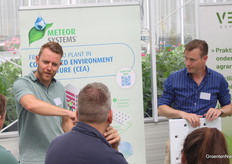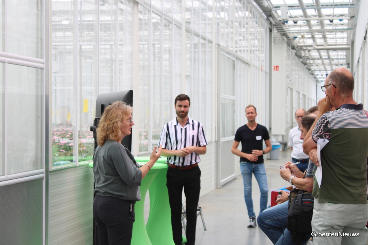 Eugenie Dings van (Gerdi Consult) en Sergio Harinck van Vertify bespraken onderzoek naar de effecten van nutriënten op ziekten, plaagorganismen en hun bestrijders in gerbera en komkommer.