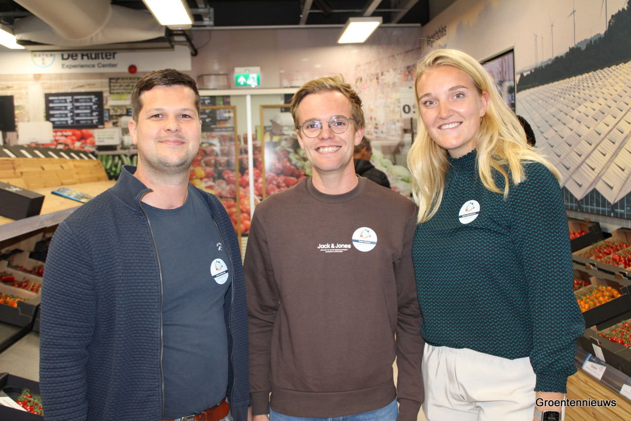 Lars van Marrewijk, Tobias Wieman (Van Marrewijk Tomaten) en Sanne van Kuyvenhoven (Growers United)