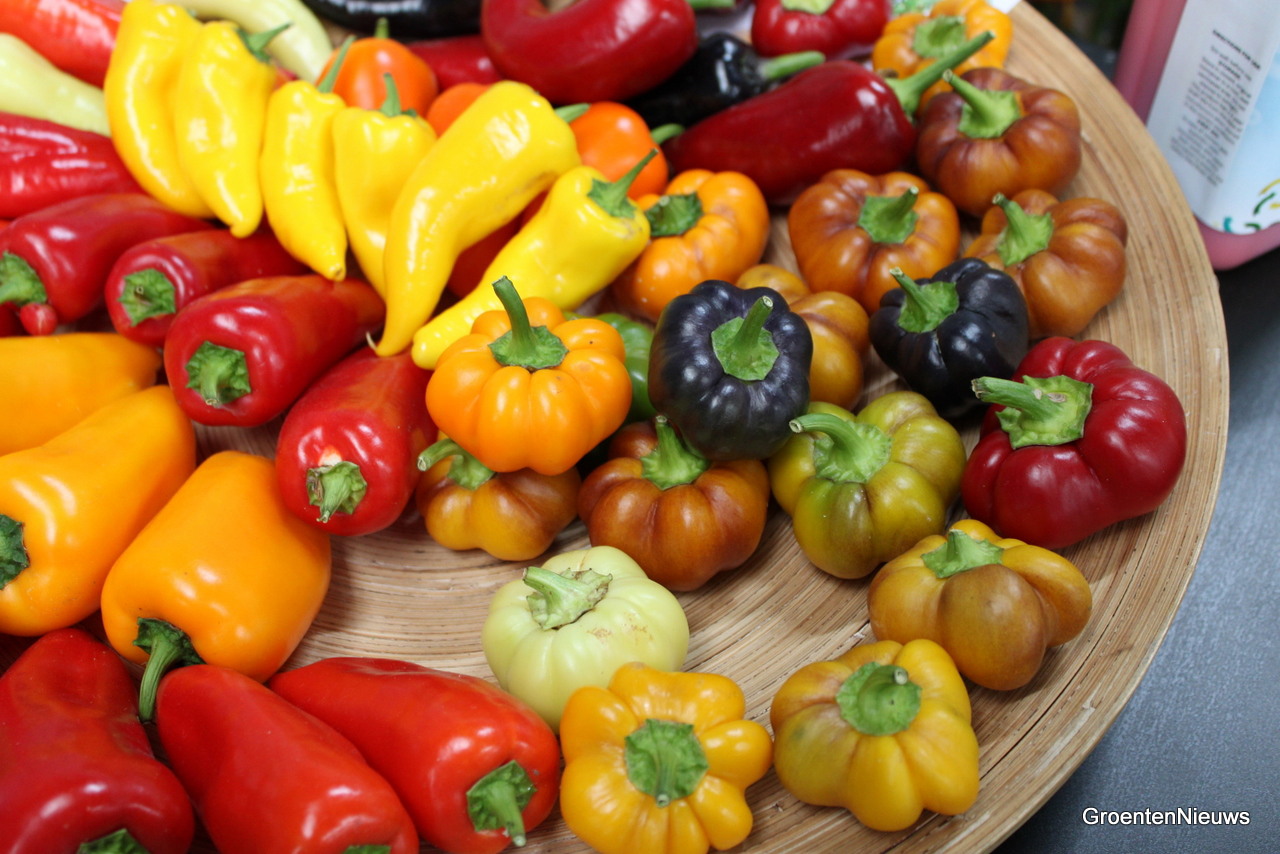 Pompoenpaprikaatjes, een specialty van Prudac die doorkleurt, wat een bont kleurenpallet geeft.