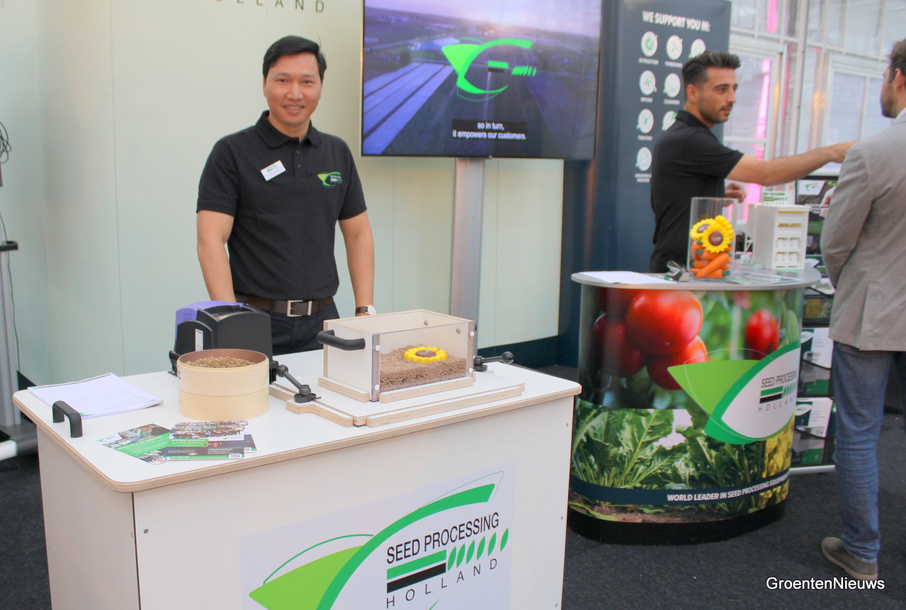 Dingwei Wu van Seed Processing Holland. Hij is Sales Account Manager China. Ook uit Azië weten bezoekers de beurs in Zwaagdijk steeds beter te vinden.