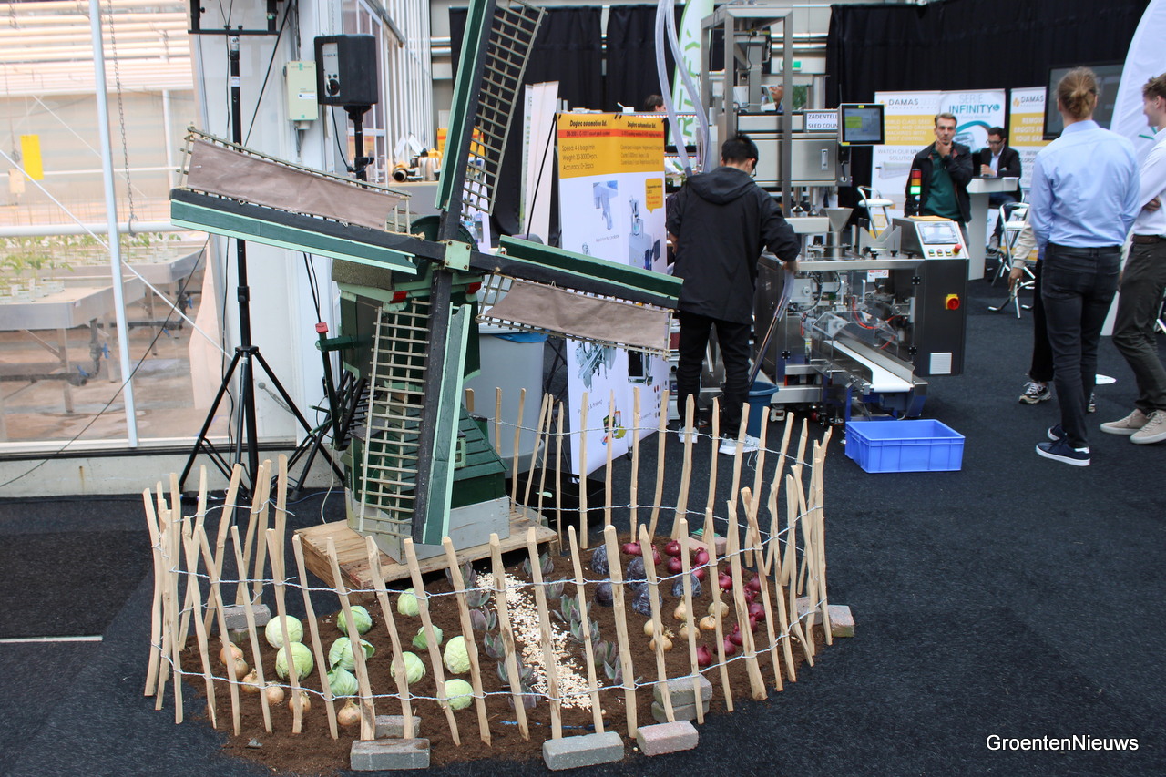 Een Noord-Hollands tafereeltje met een replica van Molen Ceres uit Bovenkarspel, en op de achtergrond de eerste stand van een Aziatische standhouders op Seed meets Technology. De primeur was voor: Doytec automation Ltd.