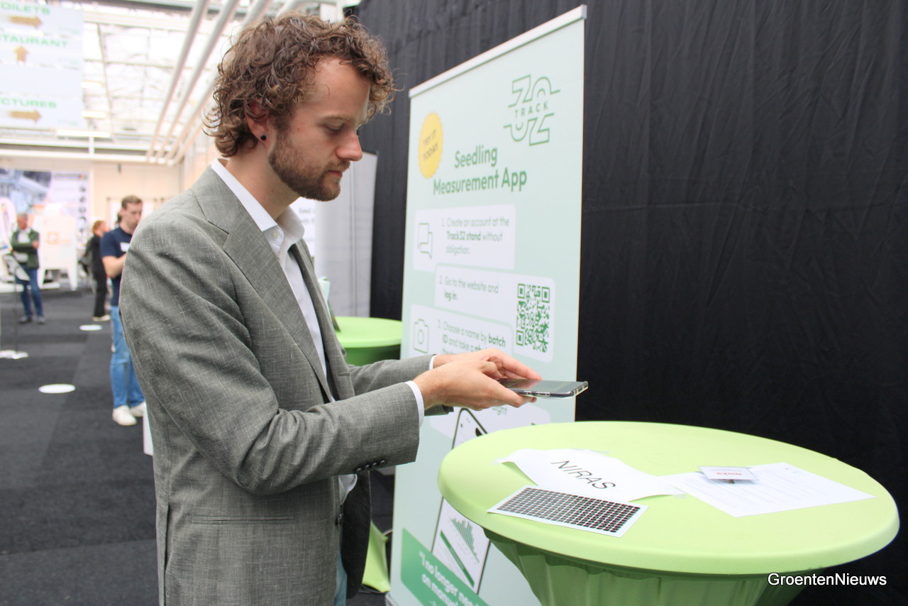 Bram Wiggers van Track32 laat zien hoe je met een smartphone opkomsttellingen voor trays kunt doen. Met innovaties zoals hier bij dit beeldherkenningsbedrijf is de verwachting dat handmatig tellen binnen afzienbare tijd niet meer nodig is.