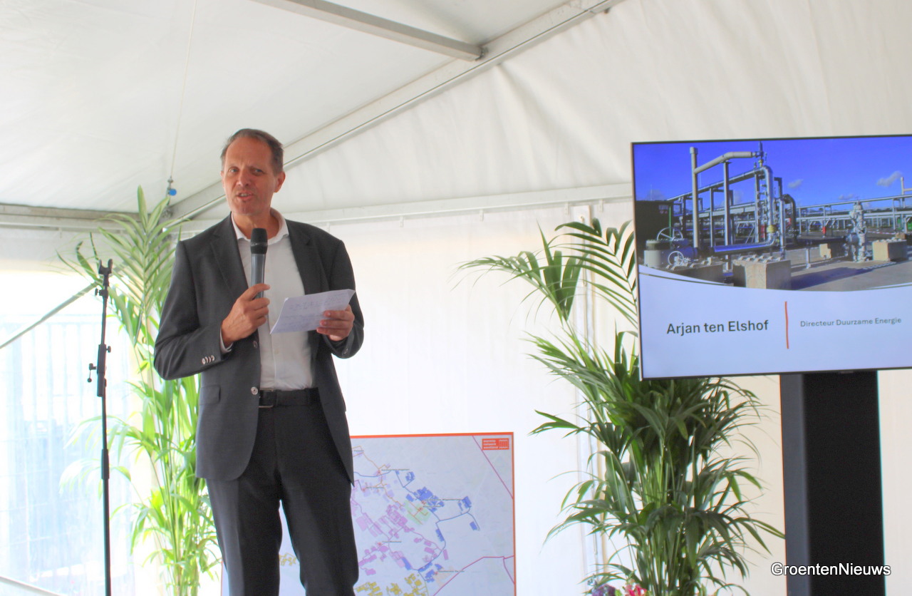 Arjan ten Elshof mocht als directeur warmte bij HVC als eerste spreken bij de viering van aardwarmteproductie bij Aardwarmte Maasdijk.