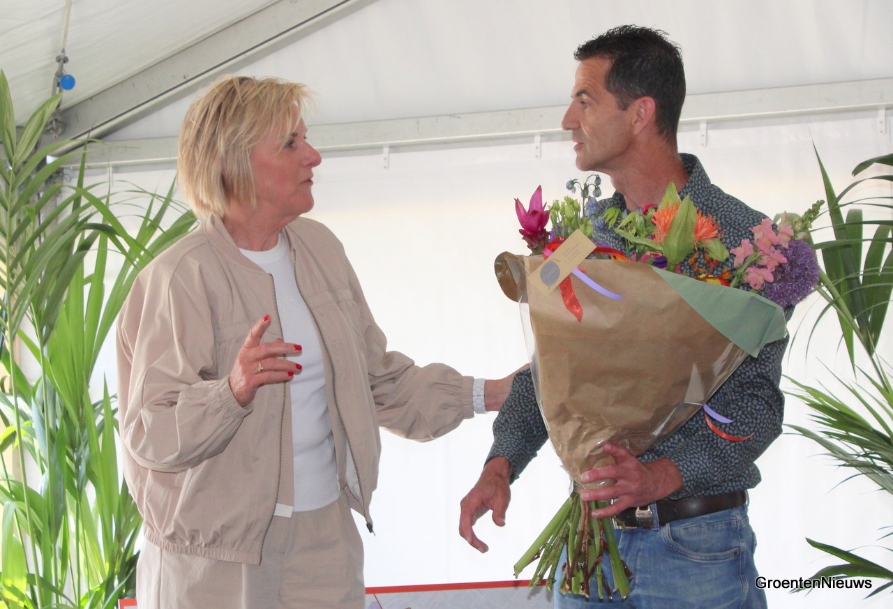 Een bloemetje voor Karin van der Meijs. Zij onderhield lange tijd de contacten met alle tuinders en weet als geen ander dat er 24 tuinders warmte uit het project ontvangen, waarbij 2 bedrijven 2 aansluitingen hebben.