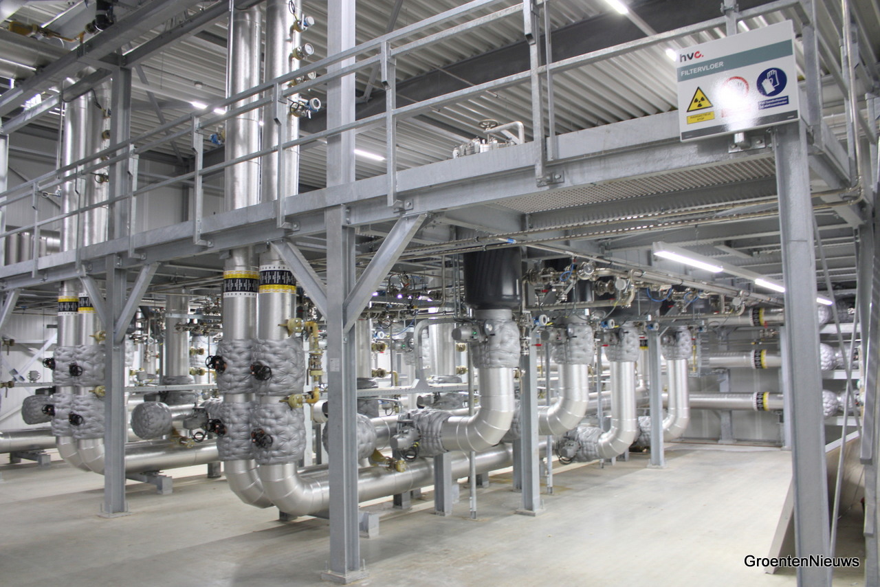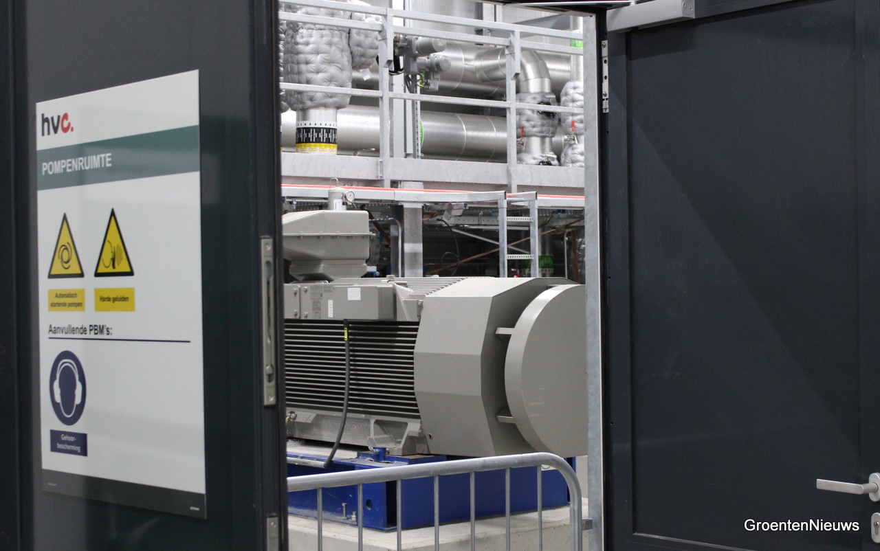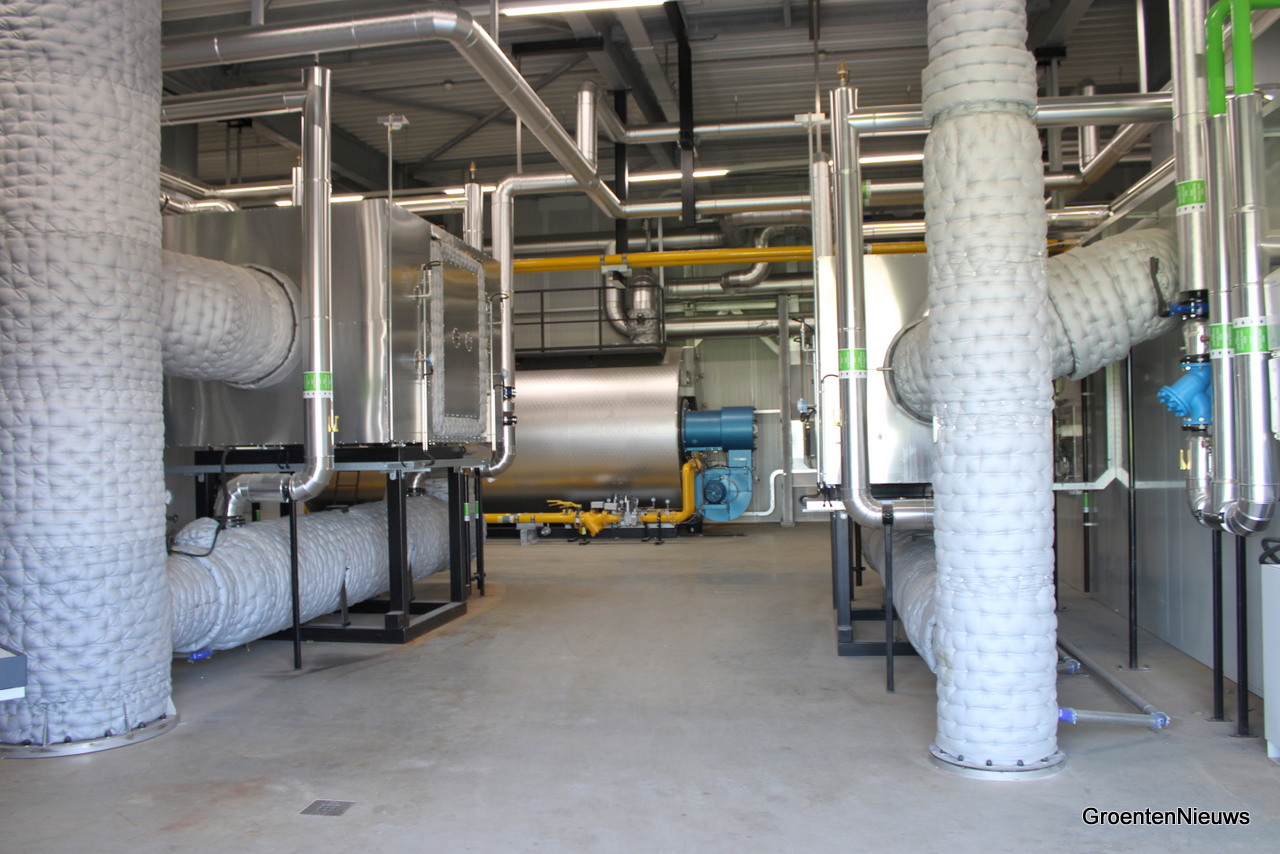De balanstank links zit vol warm water, variërend in temperatuur. Met die tank, zoals de naam al doet vermoeden, wat gebalanceerd worden als de afnames van tuinders daarom vragen.