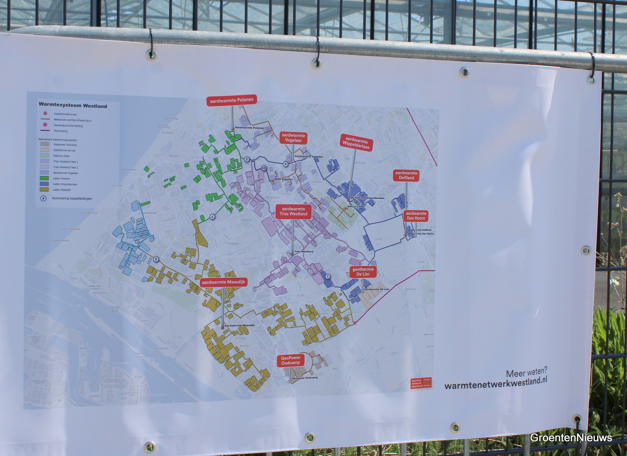 De diverse aardwarmtebronnen die Westland al rijk is, waaronder twee projecten op een zakdoek, uiterst rechts op het kaartje.