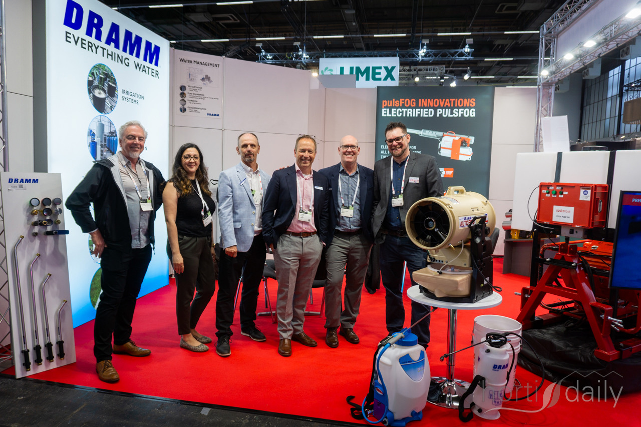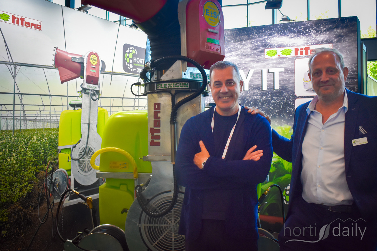 De nieuwste Wanjet spuitrobot heeft een dubbele verticale spuitboom, waarbij beide spuitbomen in spiegelbeeld zijn gemonteerd.