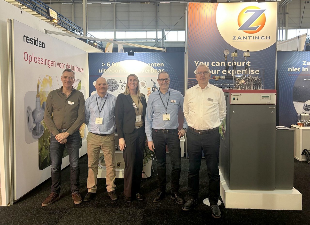 uiterst links op de foto: Jan Zantingh, nieuw bij Zantingh dat een stand deelde met Resideo