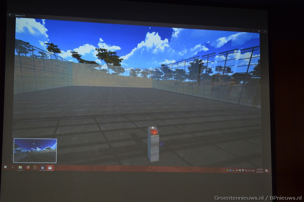 De rode knop die de opening in Virtual Reality in gang moest gaan zetten.