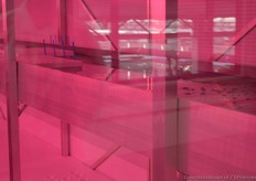Een continu ronddraaiend meerlagenteeltsysteem onder ledbelichting.