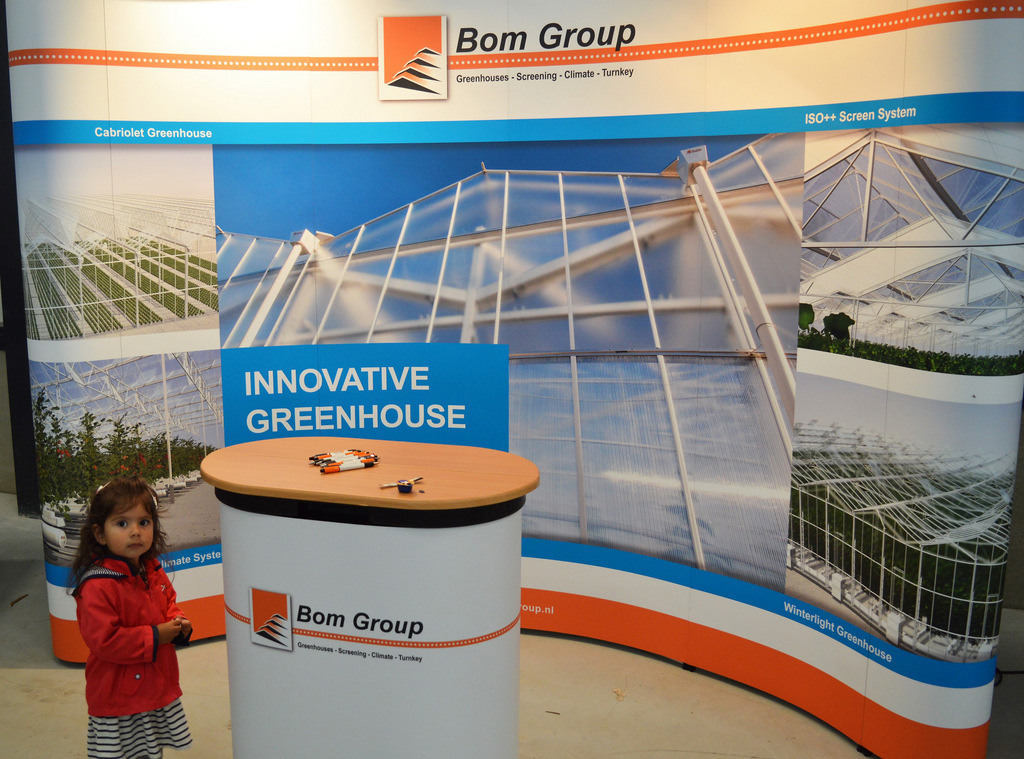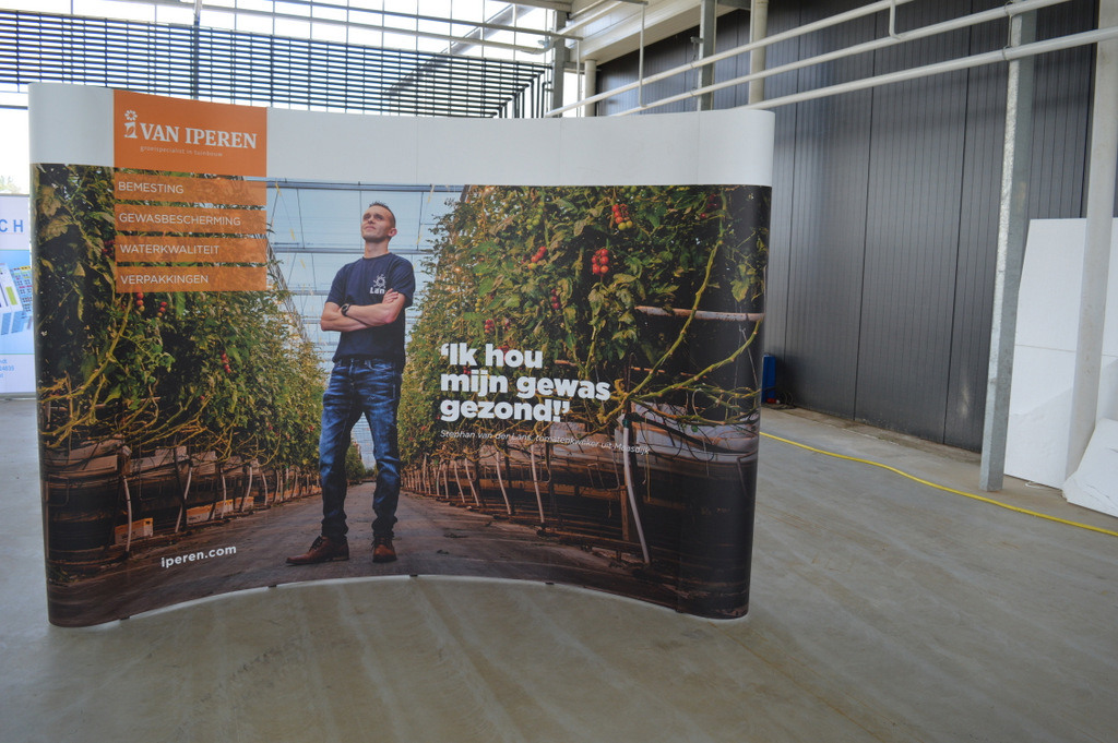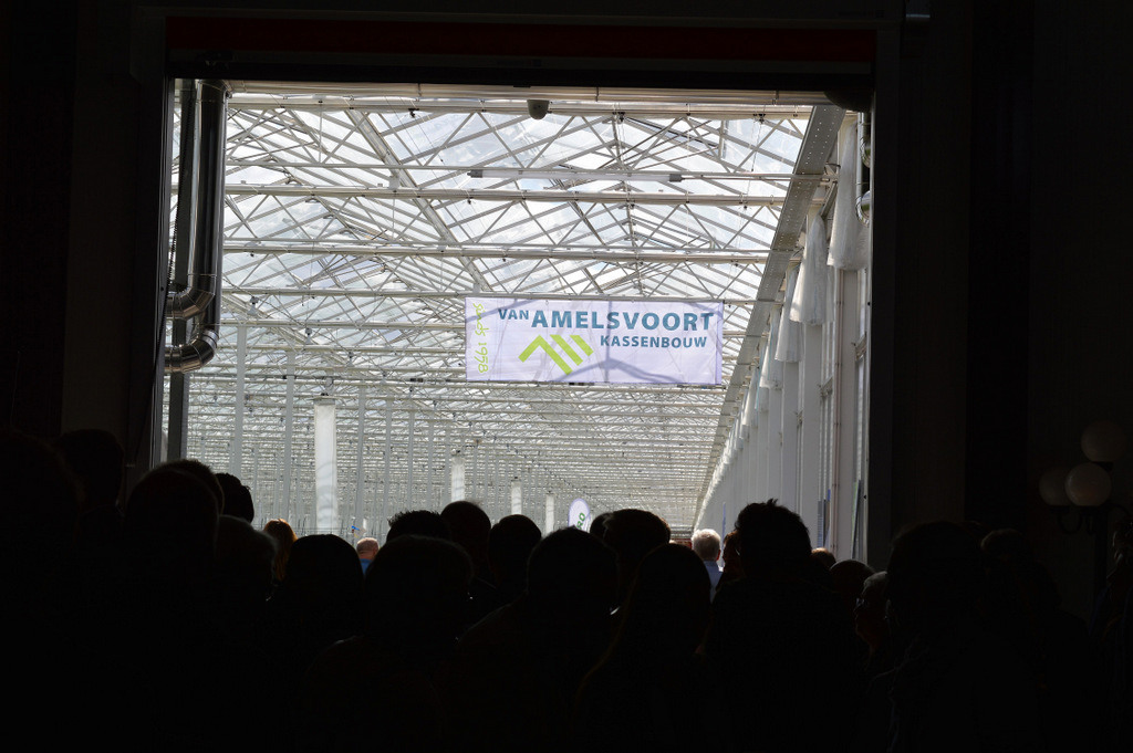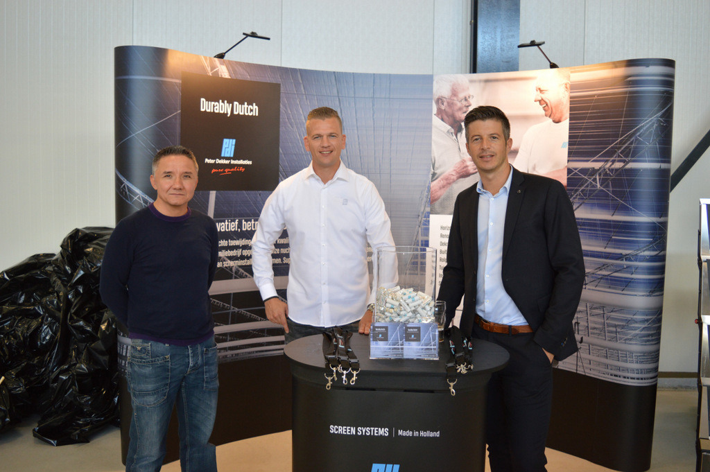 Peter Dekker Installaties present met Jeroen de Jonge, Steven Hollebrandse en Peter Dekker. Het klimaatscherm in de kas komt van PDI.