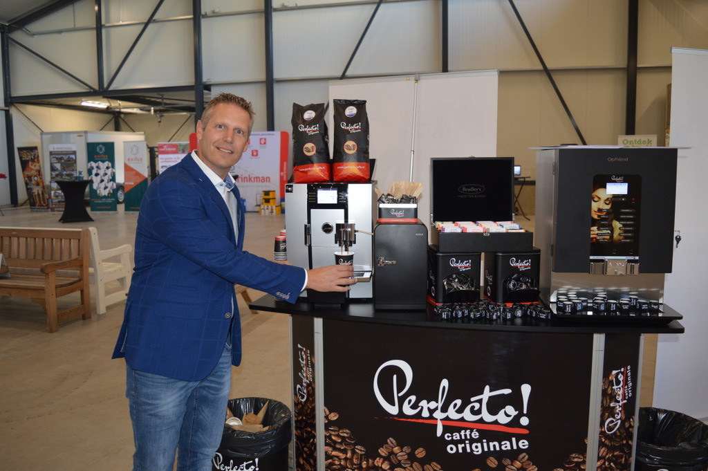 Koffie, niet vergeten. Niet alleen voor de medewerkers die de aardbeien plukken, maar ook voor de fotograaf. Op de foto Remco van der Pol (H.S.B. Haaften).