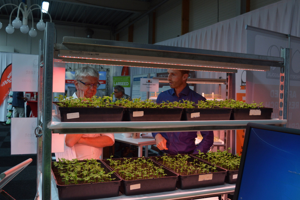 In de stand van Proeftuin Zwaagdijk geeft Rens Groot uitleg.