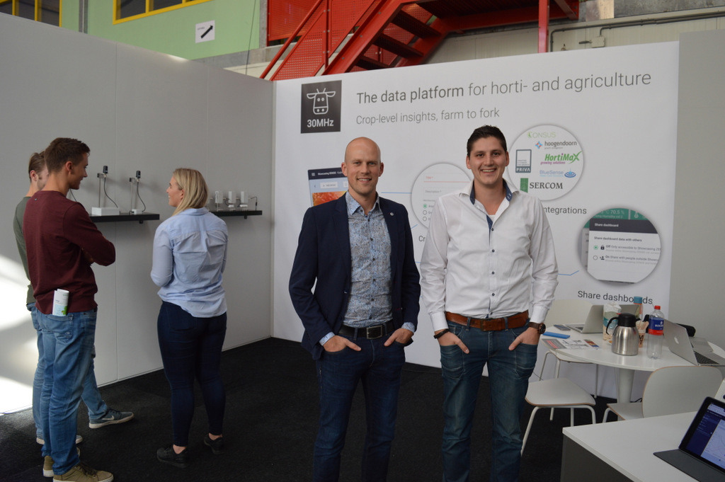 Niels Lauwers, niet lang nadat hij een lezing gaf over wat de ROI is van het nieuwe telen, en Steven Madern van 30MHz. Het bedrijf is naast hardware ook steeds meer actief met het creëren van een platform als centrale plek voor alle agrarische data.