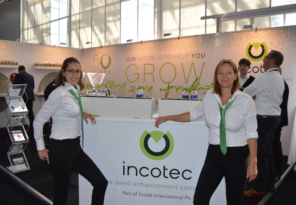Chloé Martin en Marion Smorenburg voor de stand van Incotec dat dit jaar vijftig jaar bestaat.
