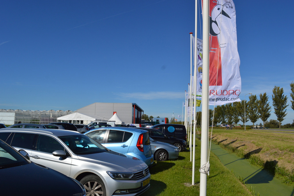 Stralend mooi weer, dus volle parkeerplaatsen om alle bezoekers voor Seed meets Technology en de nabijgelegen demovelden een plekje te bieden.