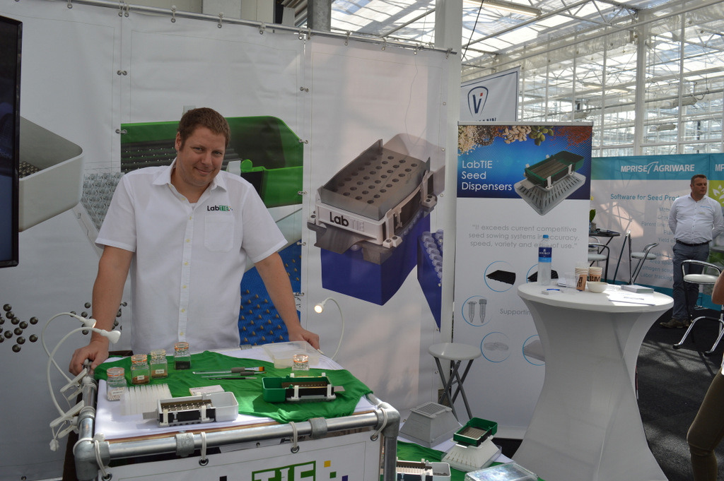 Frank van Thiel op de foto voor LabTIE. LabTIE wil helpen het veredelingsproces te versnellen door het makkelijker te maken snel zaden te zaaien op trays of schalen voor bij bijvoorbeeld kiemproeven.