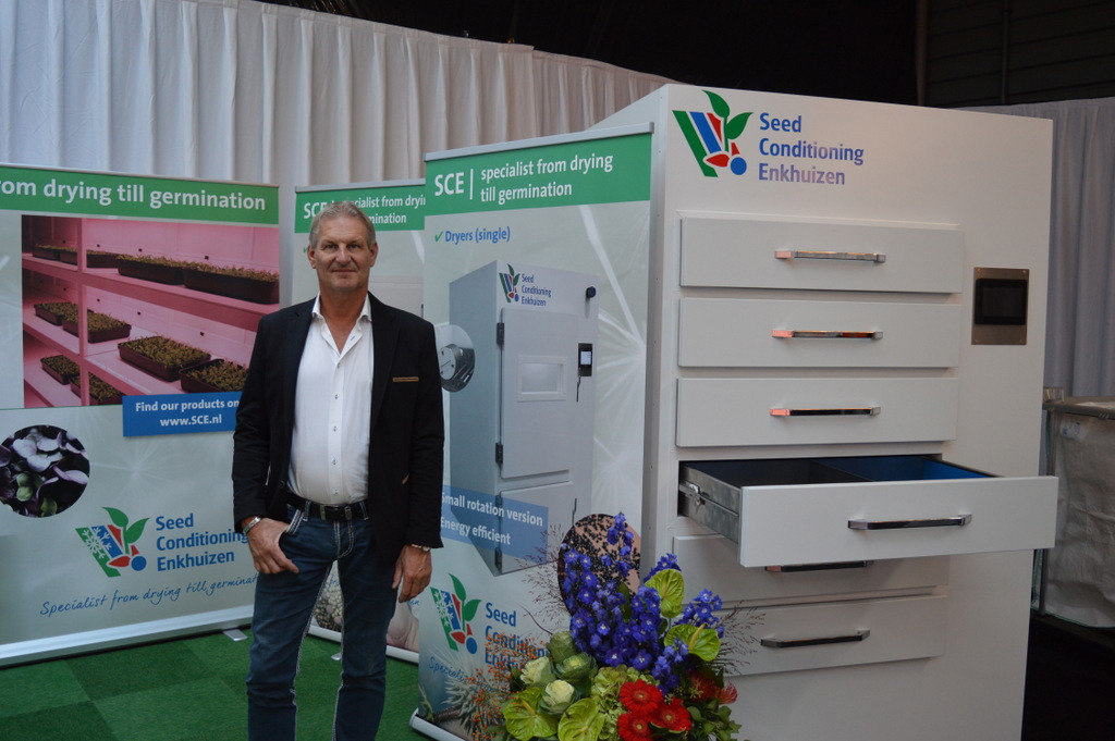 Henk Huisman van Seed Conditioning Enkhuizen staat vanaf het begin op Seed meets Technology als leverancier van drooginstallaties om zaden en gepileerde zaden terug te drogen. Ook is het bedrijf actief als leverancier van kiemcellen en zaadbewaarcellen.
