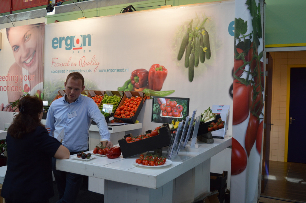 Edwin Blom in gesprek in de stand van Ergon Seeds.