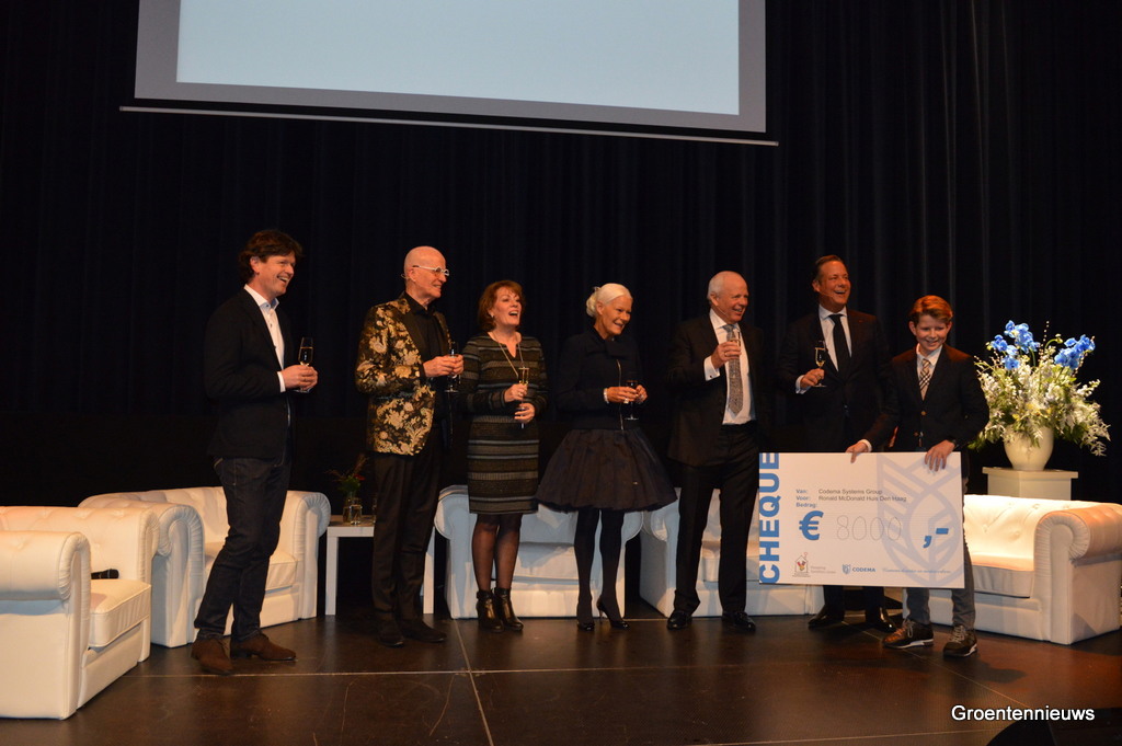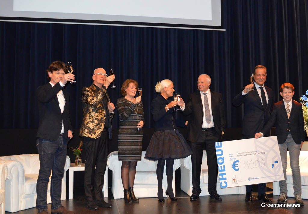 Er werd een check overhandigd met het opgehaalde cadeaugeld: in totaal 8000 euro voor het Ronald McDonald Huis Den Haag.