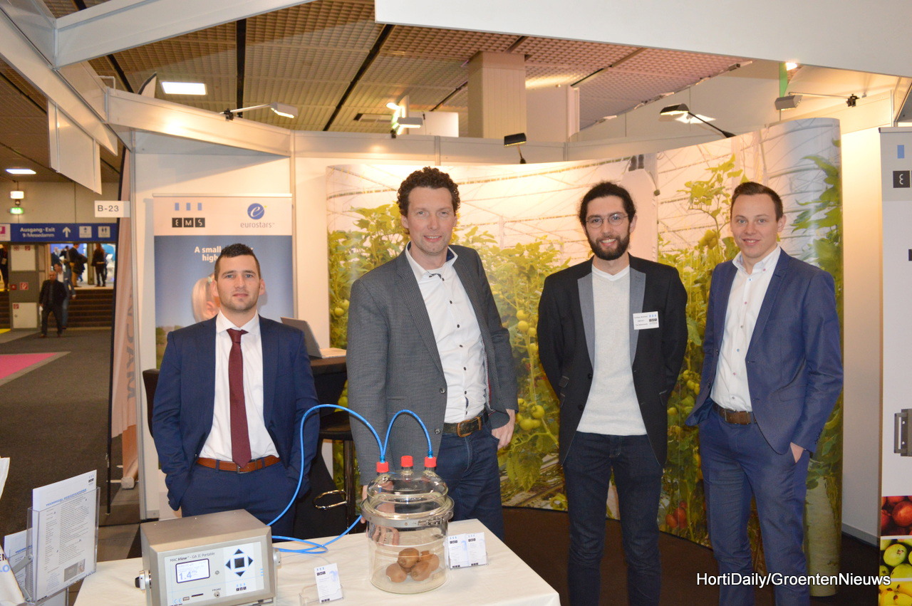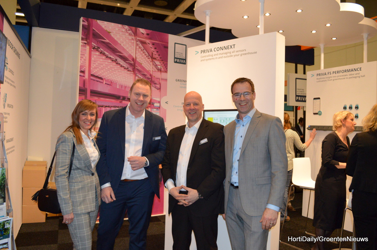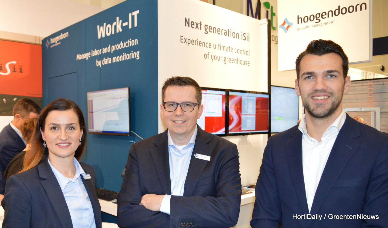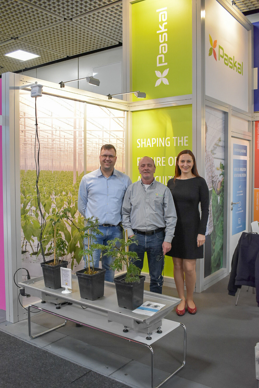 Joost van Rooij, Eliezer Adania Olga Sholomova met Paskal. Het bedrijf heeft onlangs hun DrainVision weegsysteem uitgebreid: https://www.hortidaily.com/article/9061695/optimize-your-water-content-in-berries-cannabis-leafy-vegetables-and-nurseries/