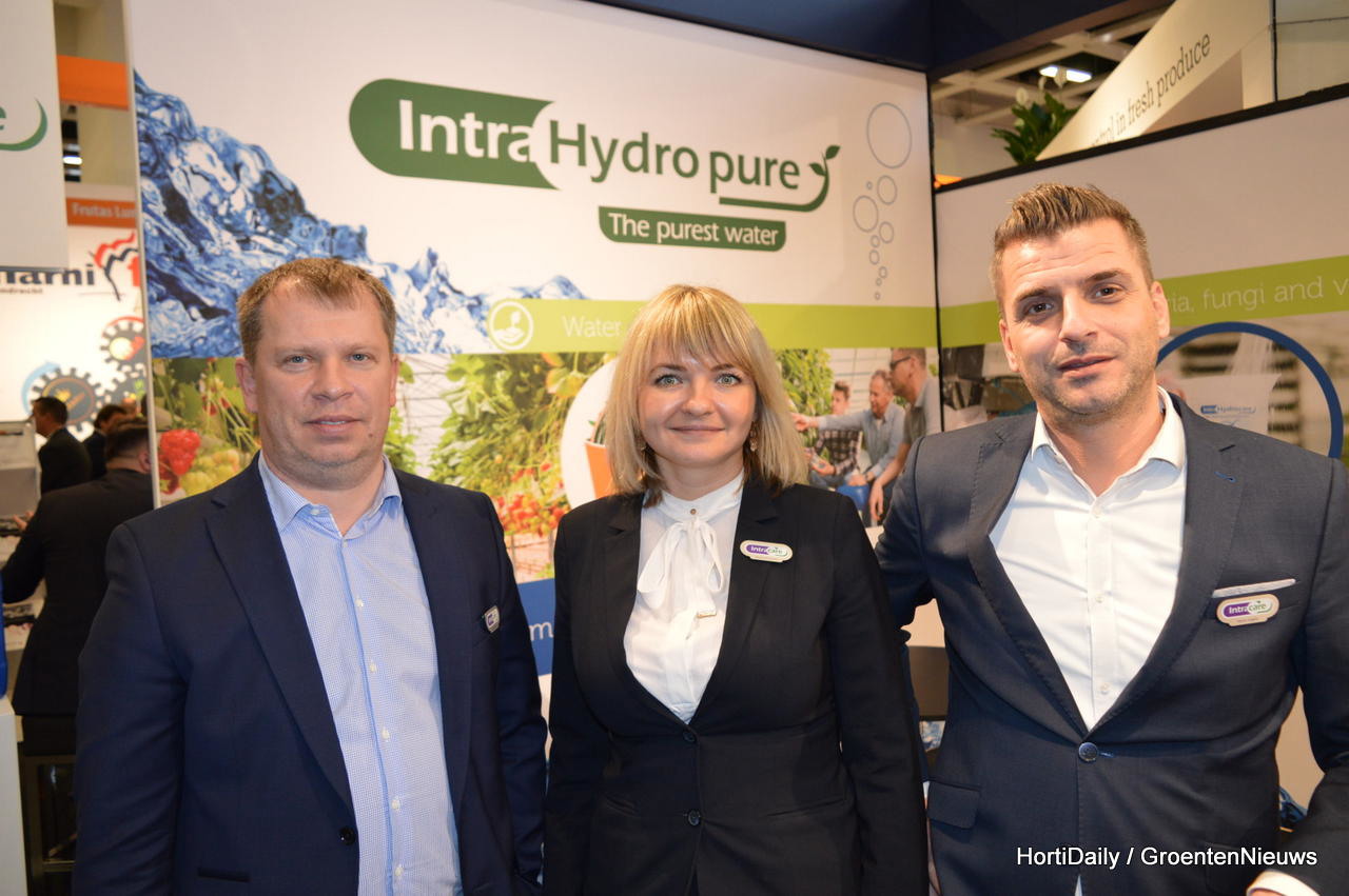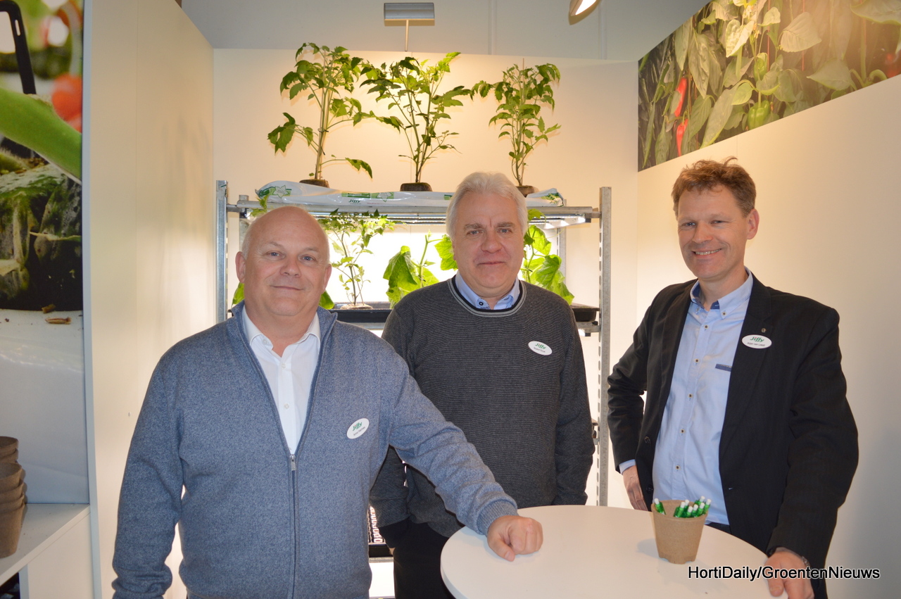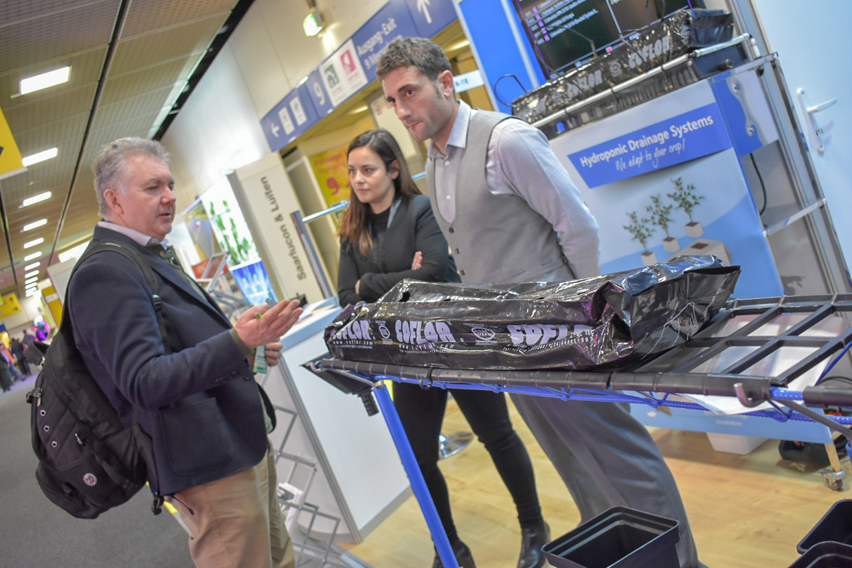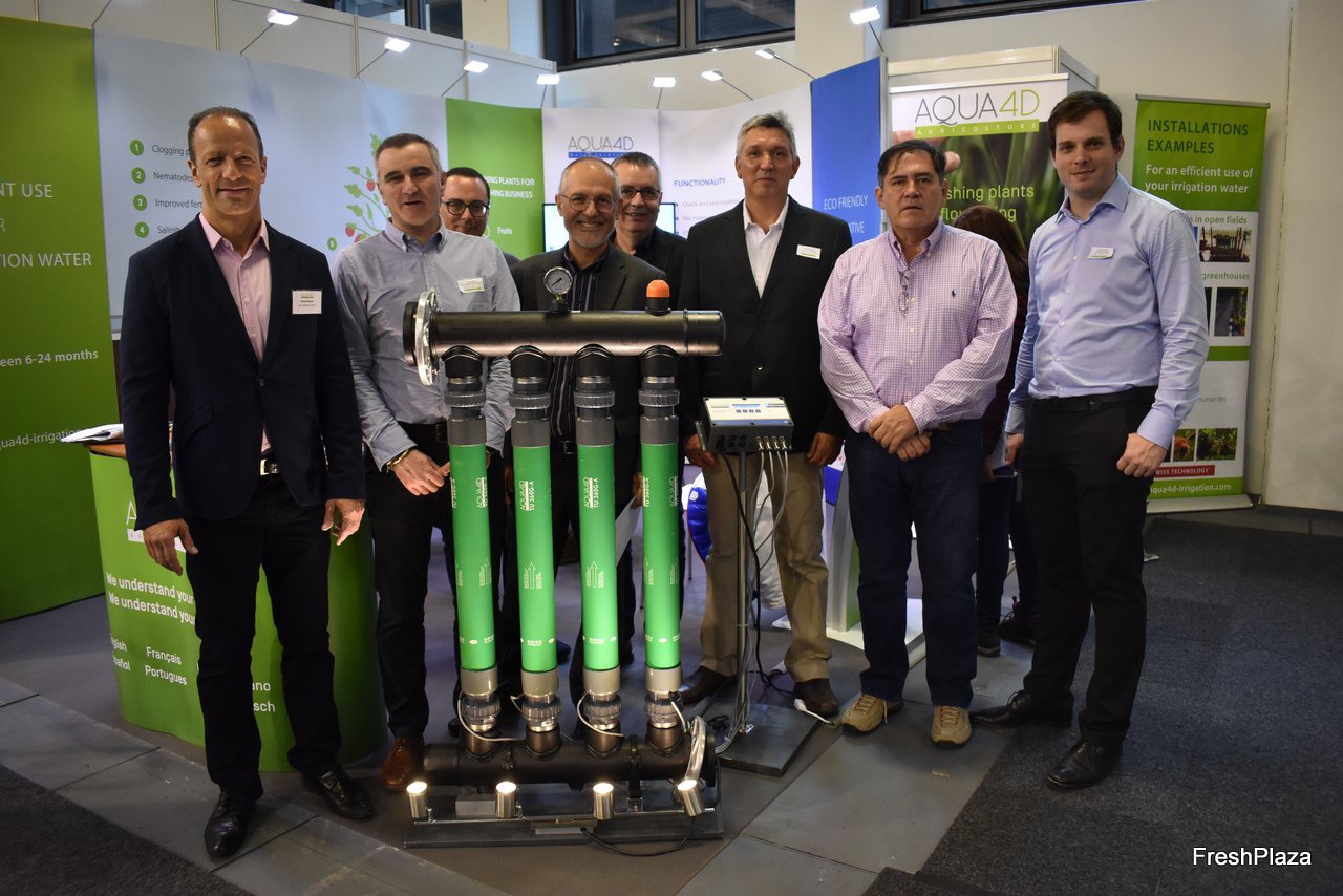 Joost van Rooij, Eliezer Adania Olga Sholomova met Paskal. Het bedrijf heeft onlangs hun DrainVision weegsysteem uitgebreid: https://www.hortidaily.com/article/9061695/optimize-your-water-content-in-berries-cannabis-leafy-vegetables-and-nurseries/