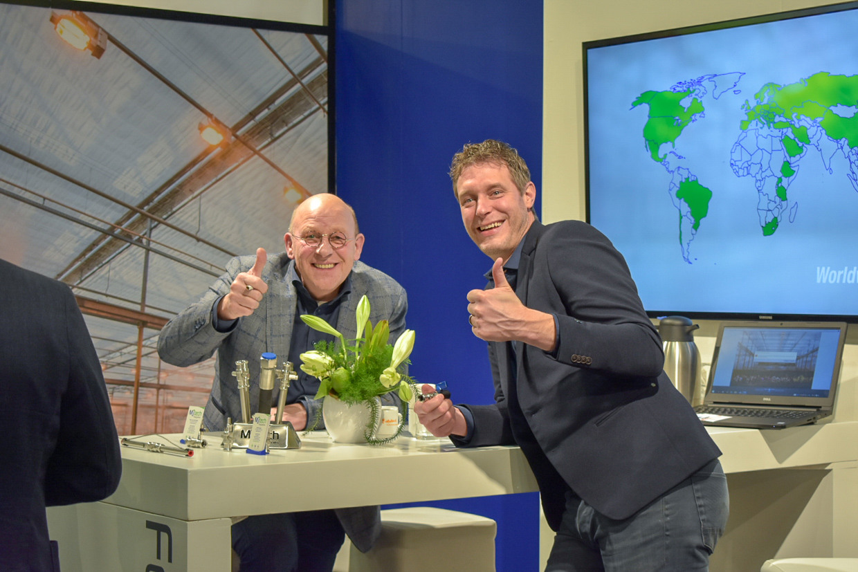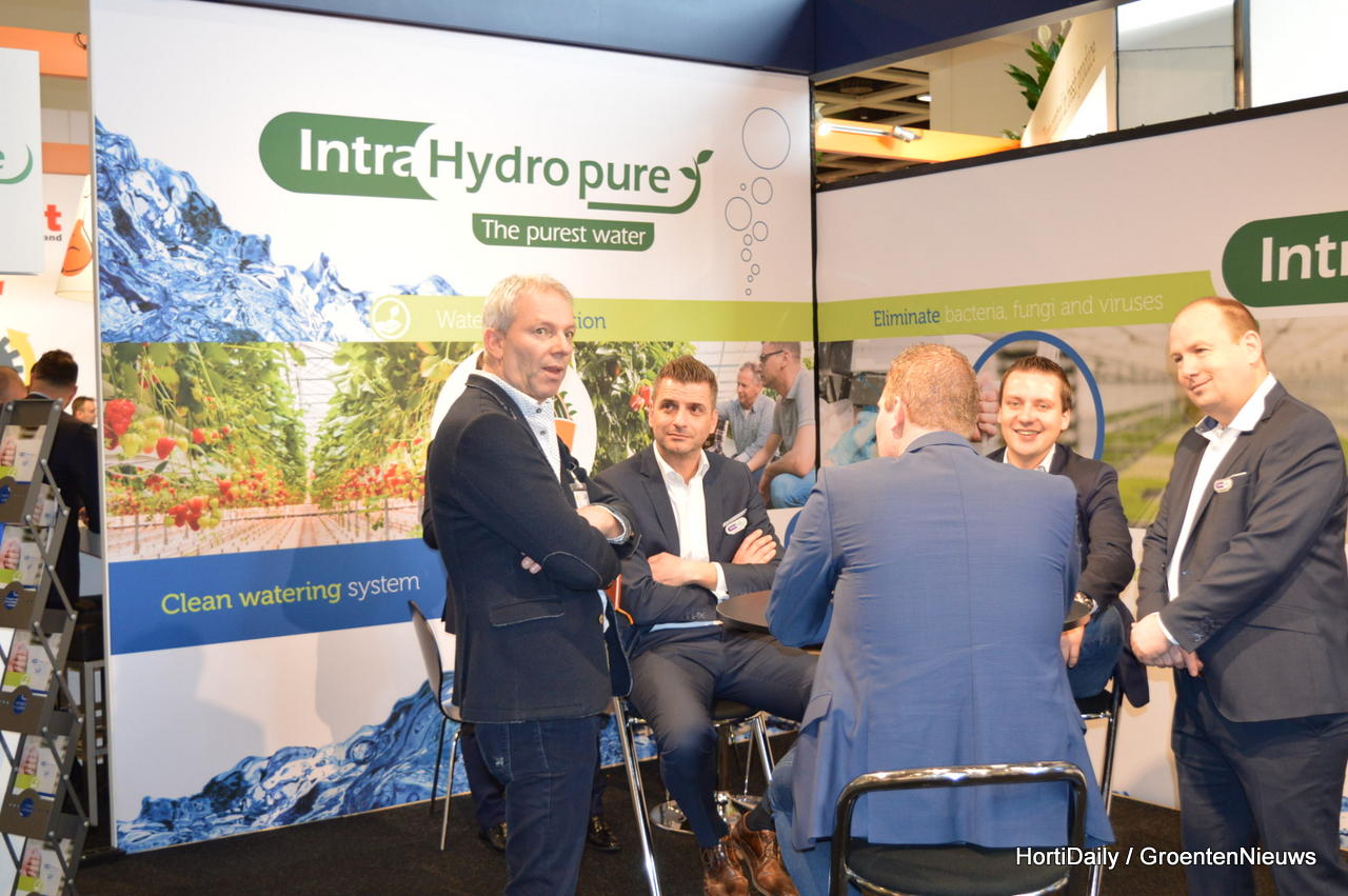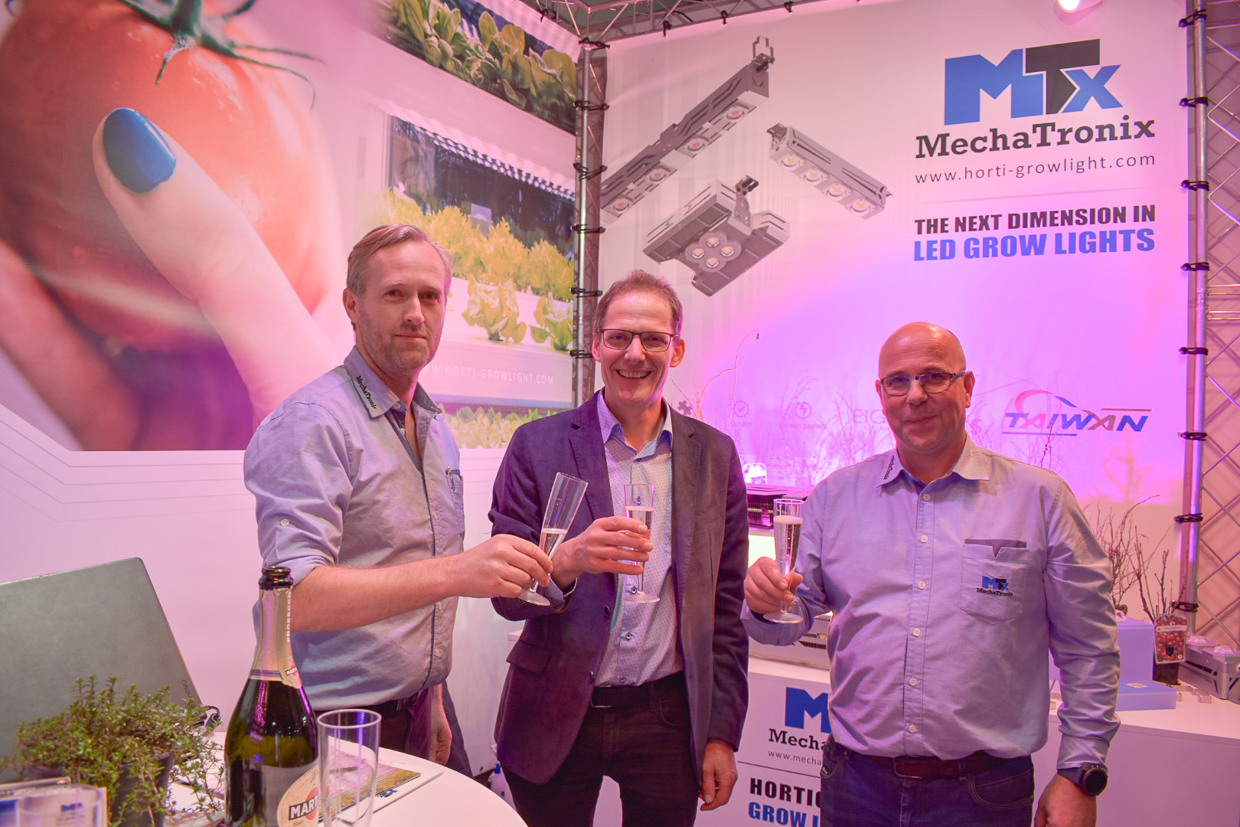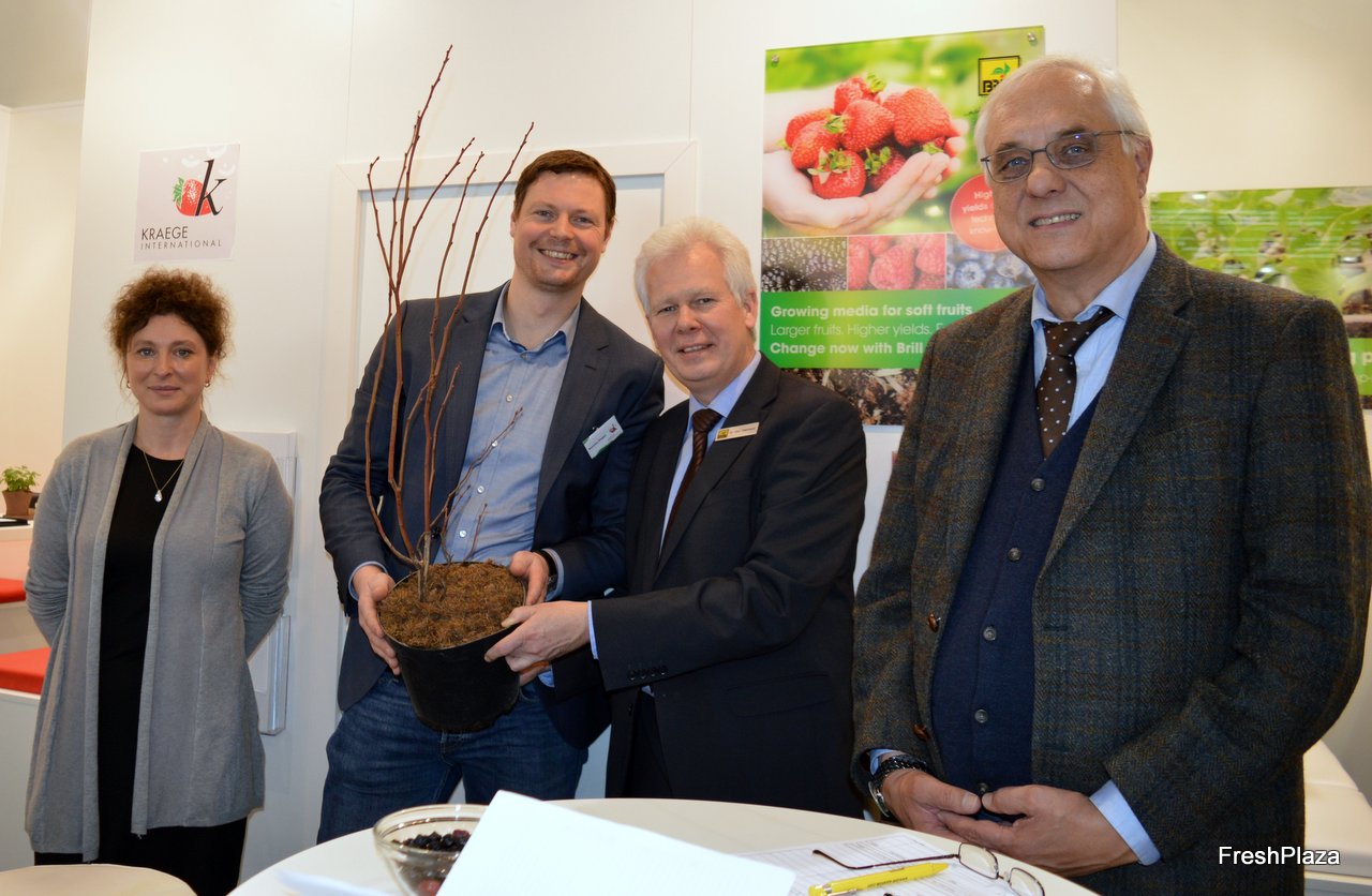 Joost van Rooij, Eliezer Adania Olga Sholomova met Paskal. Het bedrijf heeft onlangs hun DrainVision weegsysteem uitgebreid: https://www.hortidaily.com/article/9061695/optimize-your-water-content-in-berries-cannabis-leafy-vegetables-and-nurseries/