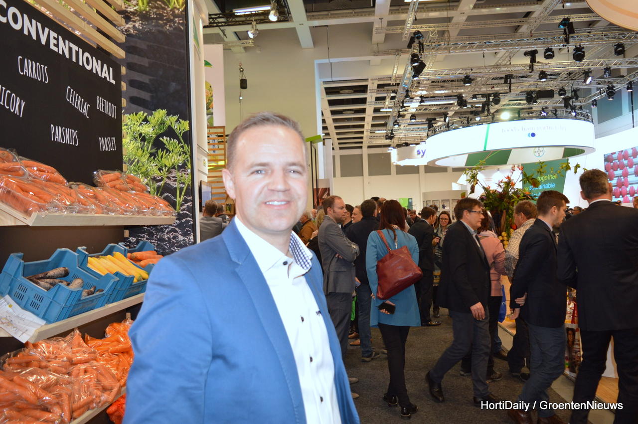 Bejo zijn! Maurice Deben van Bejo toont de verschillende gekleurde asperges uit het assortiment van de fokkers. "We willen nieuwe consumenten inspireren met de verschillende kleuren en verschillende smaken. De Erasmus is bijvoorbeeld een salade-asperge, net als de Tricolore. Dankzij de korte bereidingstijd past het volledig in moderne voedingspatronen.”