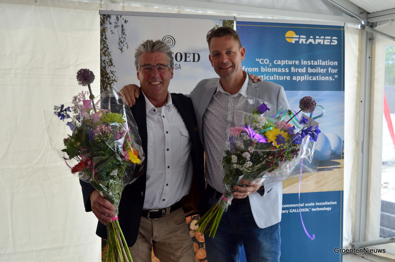 Operators John Timmers en Johan Sol houden zich dag en nacht bezig met het draaien van de installatie en dus verdienden zij een bloemetje.