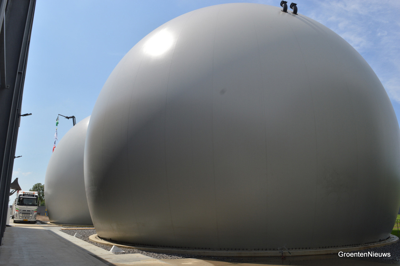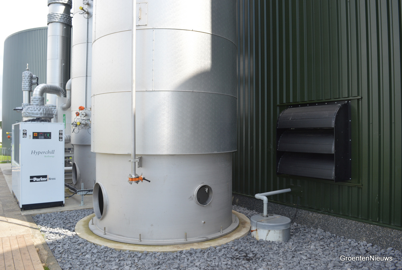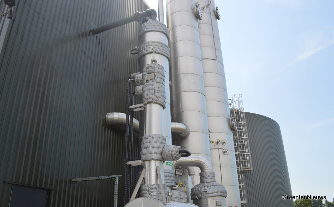 Aan de achterkant een minstens even indrukwekkende installatie. Hier wederom veel buizen en pijpen om de CO2 af te vangen en naar de opslagbollen te transporteren.