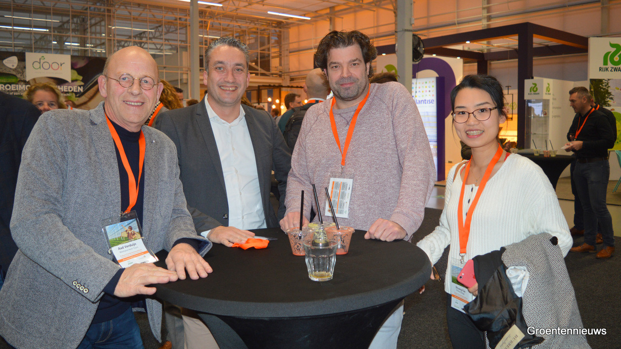 Aad Verduijn (Westland Horti Tours), Xander van der Zande (DanDutch), Patrick Klok (Prins Group) en Shuang Fan (Prins Group)