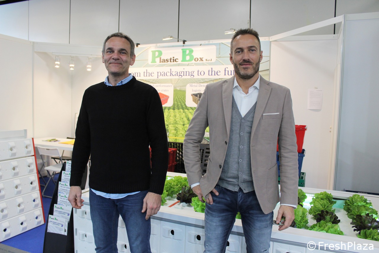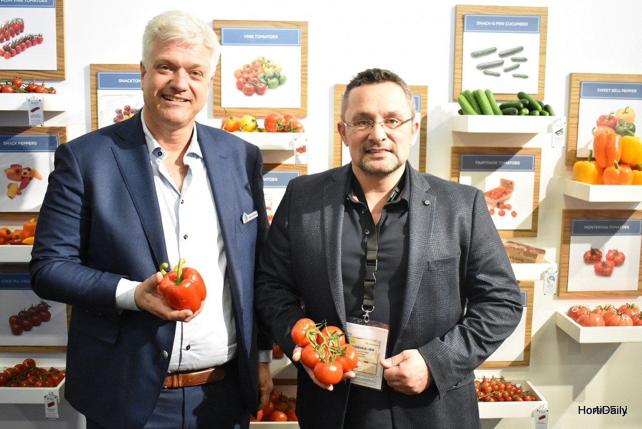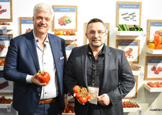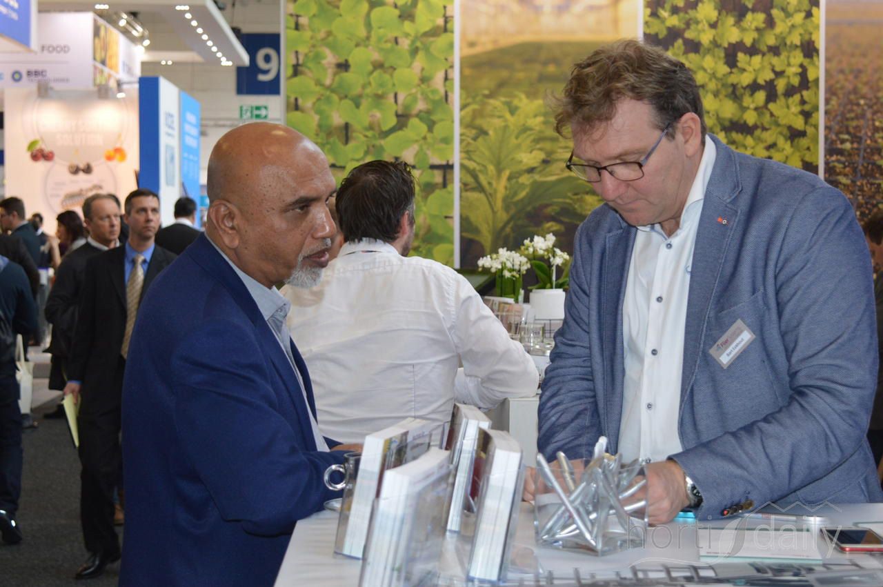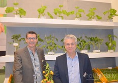 Frank Vriends en Rob Valke van Beekenkamp Plants. Zij laten de opkweekmogelijkheden van vrucht- en vollegrondsgewassen zien.