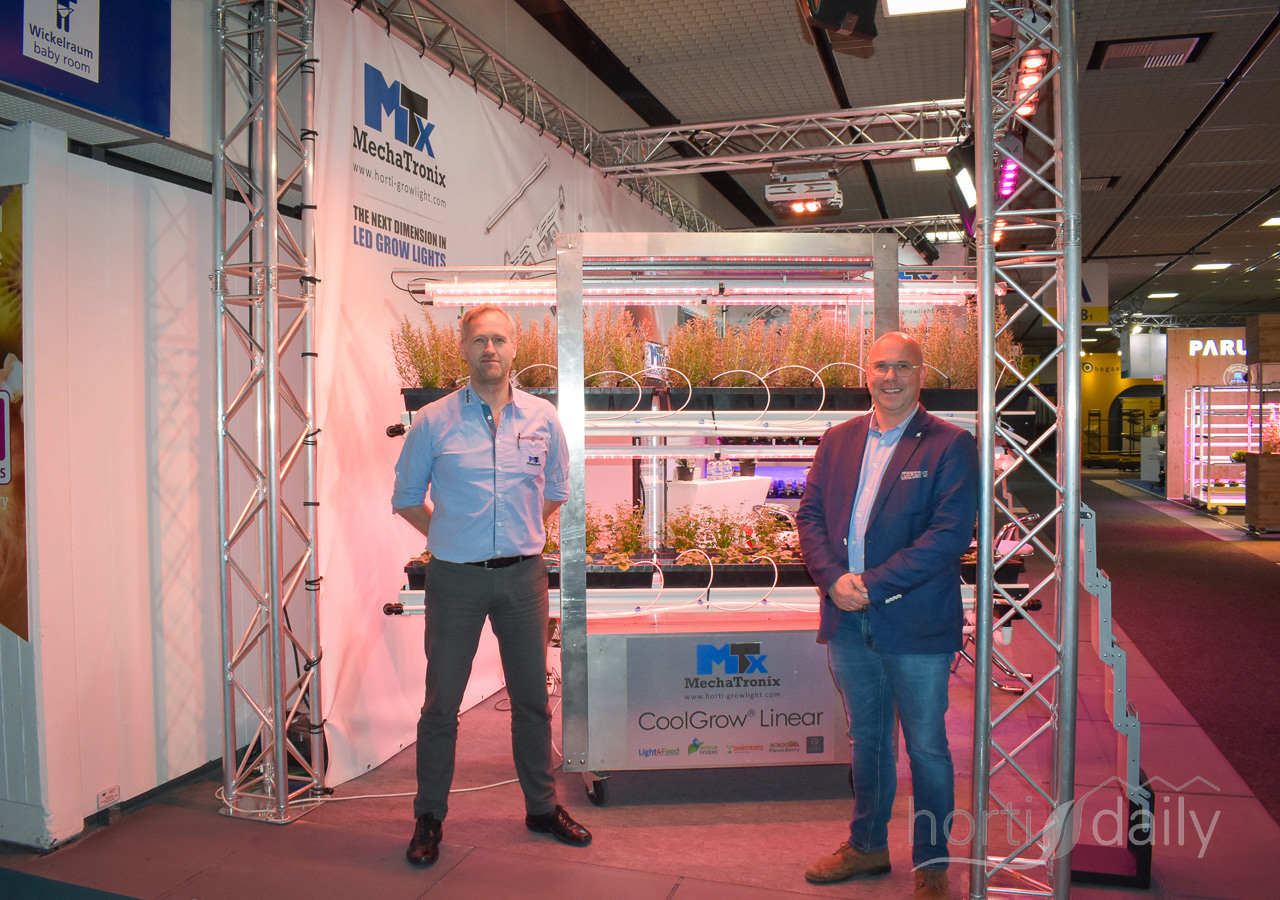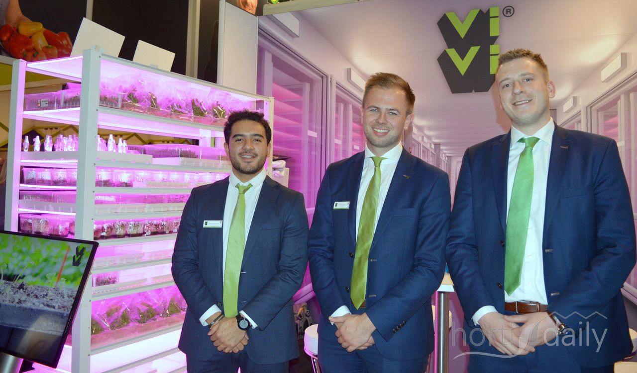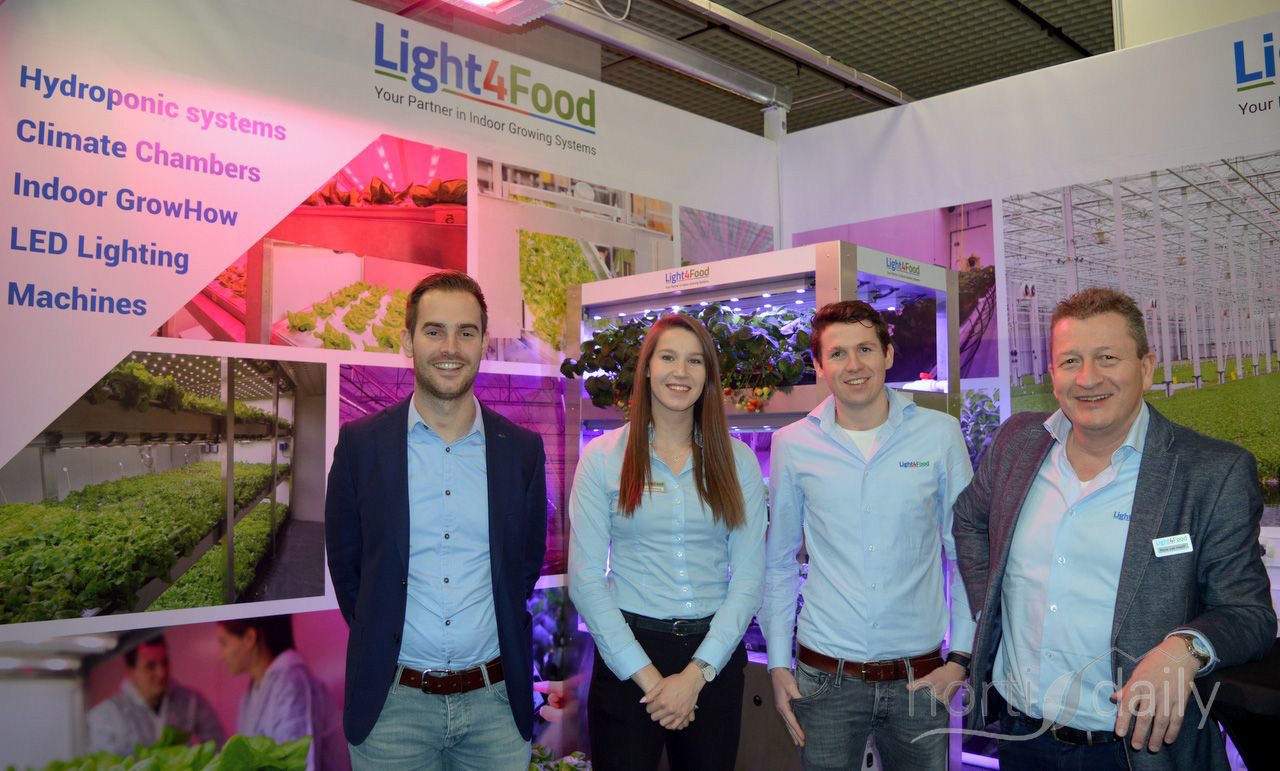 Ronald Thijssen (Maurice Kassenbouw), Lizan Verbong, Niels Jacobs en René van Haeff (Light4Food) traditiegetrouw samen op de beurs. Light4Food heeft sinds 2018 een eigen machinedivisie waarmee het volledig gemechaniseerde teeltsystemen ontwikkeld. https://www.groentennieuws.nl/article/9186622/light4food-heeft-alles-goed-op-een-rijtje-met-een-gemechaniseerd-teeltsysteem/