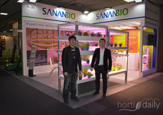 De lampen van SananBio. Reinier Donkersloot gaat voor het bedrijf aan de slag in Europa, maar was net op het moment van de foto een rondje aan het lopen. Op de foto nu Kido Wu en Ma Jian.