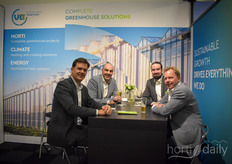 Oscar Nijman (Saarlucon), Twan Leurs en Marco van ’t Hart (Luiten Greenhouses) hadden bezoek van Jorien Schouten-Plak (Besseling & All Techniek).