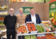 Geert Vilez, Olivier en Guy De Meyer van Demargro. Vanwege de zachte temperaturen deze winter valt de verkoop van wintergroenten wat tegen. Voor aardbeien was het afgelopen jaar zeer goed.