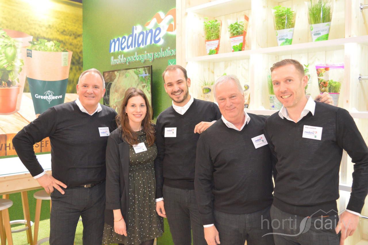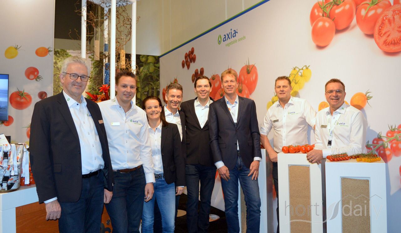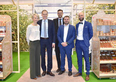 Groepsfoto bij de Cora Seeds stand. Links Maurizio Bacchi, Angelo Crucitti, Enrico Tarabusi, Alessandro Bacchi en Enrico Rappuoli.